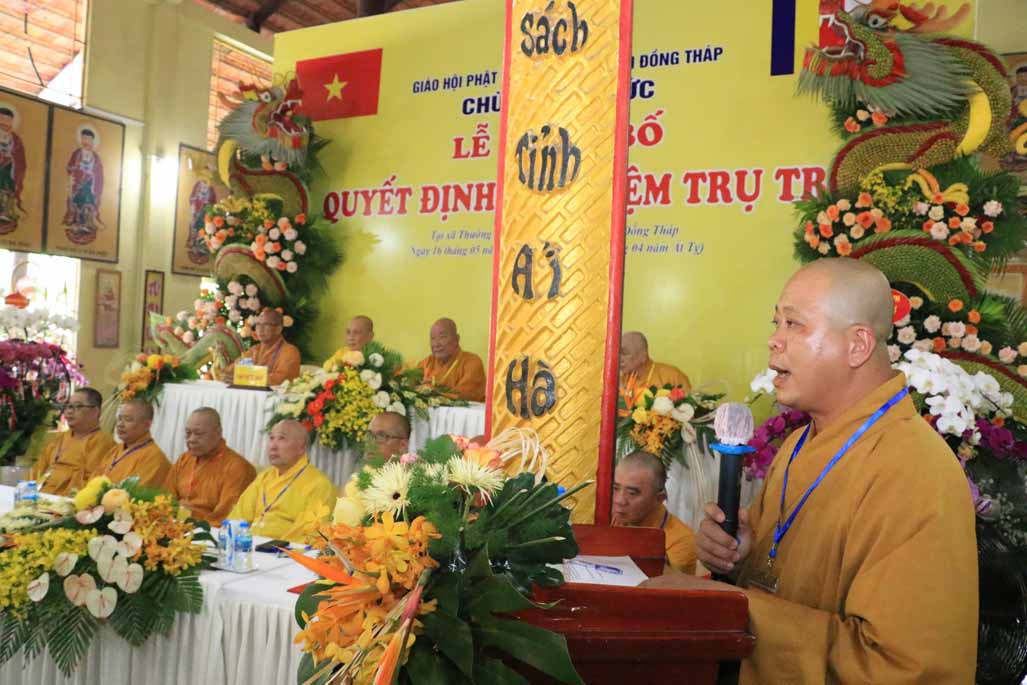 Quang lâm chứng minh có sự hiện diện của Trưởng lão Hòa Thượng Thích Nhật Quang, Trưởng lão Hòa thượng Thích Phước Thông – Đồng Thành viên HĐCM, Chứng minh BTS GHPGVN tỉnh; TT. Thích Tĩnh Triệt – Ủy viên HĐTS, Trưởng ban Trị Sự GHPGVN tỉnh; TT. Thích Chơn Trí – Phó Thường trực BTS GHPGVN tỉnh Đồng Tháp; HT. Thích Huệ Minh – Phó ban Trị sự, Trưởng Ban Pháp chế GHPGVN tỉnh; Hòa Thượng Thích Huệ Nghĩa – Trưởng ban Trị sự GHPGVN huyện Hồng Ngự, TT. Thích Minh Thuần – Phó ban Trị sự, Trưởng Ban GDPG GHPGVN tỉnh; TT. Thích Phước Huệ – Phó ban Trị sự, Trưởng Ban Văn hóa GHPGVN tỉnh; Ni trưởng TN. Như Trung – Phó ban Trị sự, Trưởng Phân ban Ni giới Phật giáo Đồng Tháp, TT. Thích Lệ Nhật – Trưởng Ban TT- TT GHPGVN tỉnh, TT. Thích Minh Sơn – Chánh Thư ký BTS GHPGVN tỉnh; Đại đức Thích Chí Thiện – Phó Thư ký, Chánh văn phòng BTS GHPGVN tỉnh TT. Thích Trí Khả – Phó Thư ký, Phó Văn phòng BTS Phật giáo tỉnh cùng chư Tôn đức Tăng Ni BTS các huyện, thành phố, trụ trì các tự viện và Phật tử tham dự.