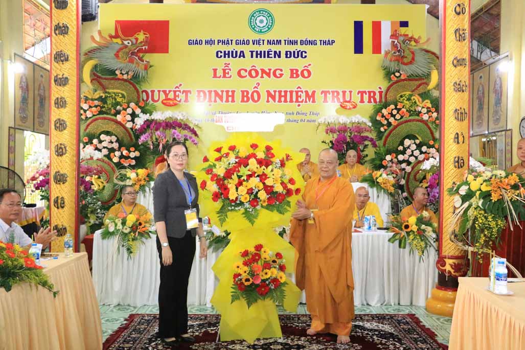 Phát biểu tại buổi lễ, Chủ tịch UBMTTQVN huyện Hồng Ngự ông Nguyễn Văn Hải, có lời chúc mừng Ni sư tân trụ trì, bày tỏ tin tưởng sẽ luôn nêu cao tinh thần phụng sự, hướng dẫn Phật tử địa phương tu tập theo đúng Chánh pháp, xây dựng ngôi già lam Thiên Đức ngày một phát triển hơn.