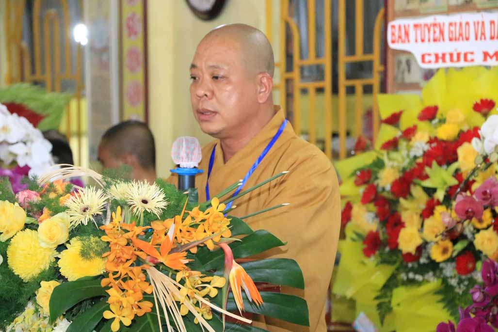 Thay mặt ban tổ chức, HT. Thích Thiện Nghĩa tuyên đọc diễn văn khai mạc đã nhấn mạnh: “… mỗi một ngôi chùa đều phải thực hiện được nhiệm vụ cao cả là hoằng dương Phật pháp đến với chúng sinh, đồng thời nuôi dưỡng giá trị lòng thương cao đẹp. Để làm được như vậy thì điều cốt lõi là cần có một vị trụ trì với chí nguyện cầu đạo giải thoát, chân thật thực hành giáo pháp của Đức Như Lai…”