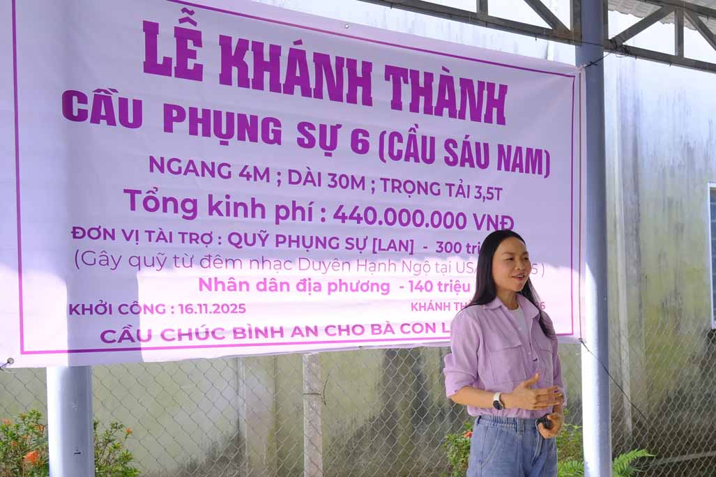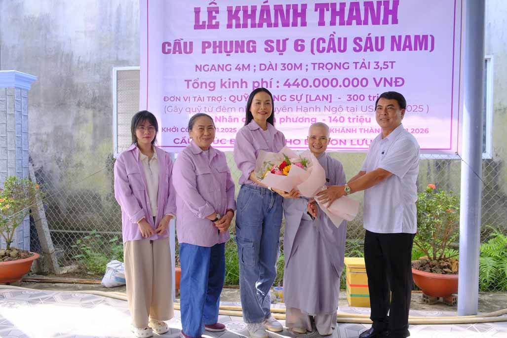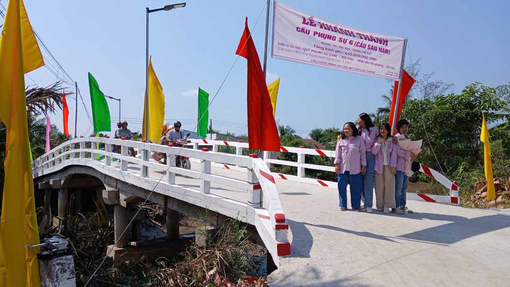 Được biết trước đó vào ngày 16/11/2025, UBND xã đã cùng các thành viên và mạnh thường quân từ Mỹ Quốc trong nhóm Quỹ Phụng Sự tổ chức Lễ khởi công xây dựng công trình Cầu Quỹ Phụng Sự 6, với số tiền Quỹ Phụng Sự tài trợ là 300 triệu đồng, số tiền này là nguồn kinh phí vận động từ Đêm nhạc gây Quỹ: “DUYÊN HẠNH NGỘ” tại USA vào tháng 8 năm 2025. Qua gần hơn 2 tháng thi công, cầu đã được hoàn thành và chính thức đưa vào sử dụng trong niềm vui mừng của bà con nhân dân.