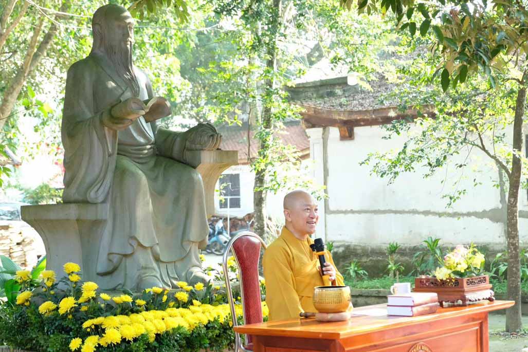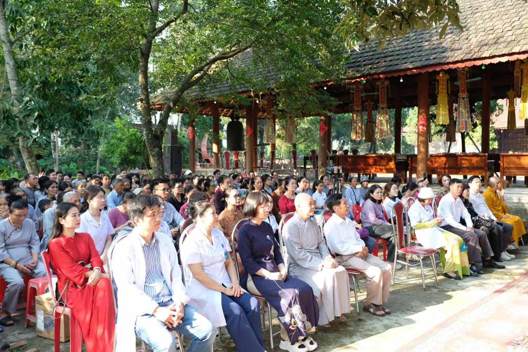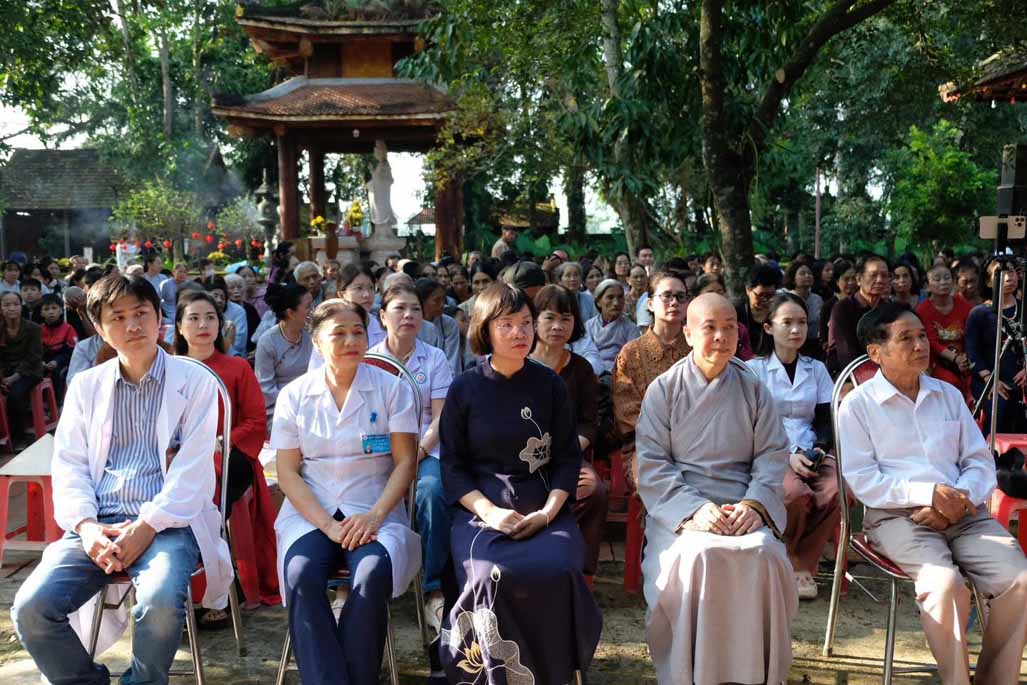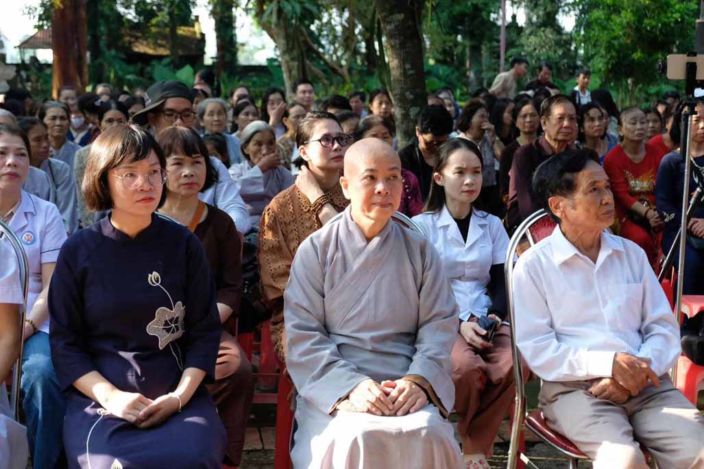 Buổi pháp thoại diễn ra trong không khí trang nghiêm, lắng đọng. Dưới tán cây vải trăm năm, lời pháp thấm sâu vào lòng người nghe, như sự gặp gỡ giữa truyền thống y học dân tộc và tinh thần giác ngộ của đạo Phật – cả hai đều quy về một mục tiêu chung: cứu khổ và nâng đỡ con người.