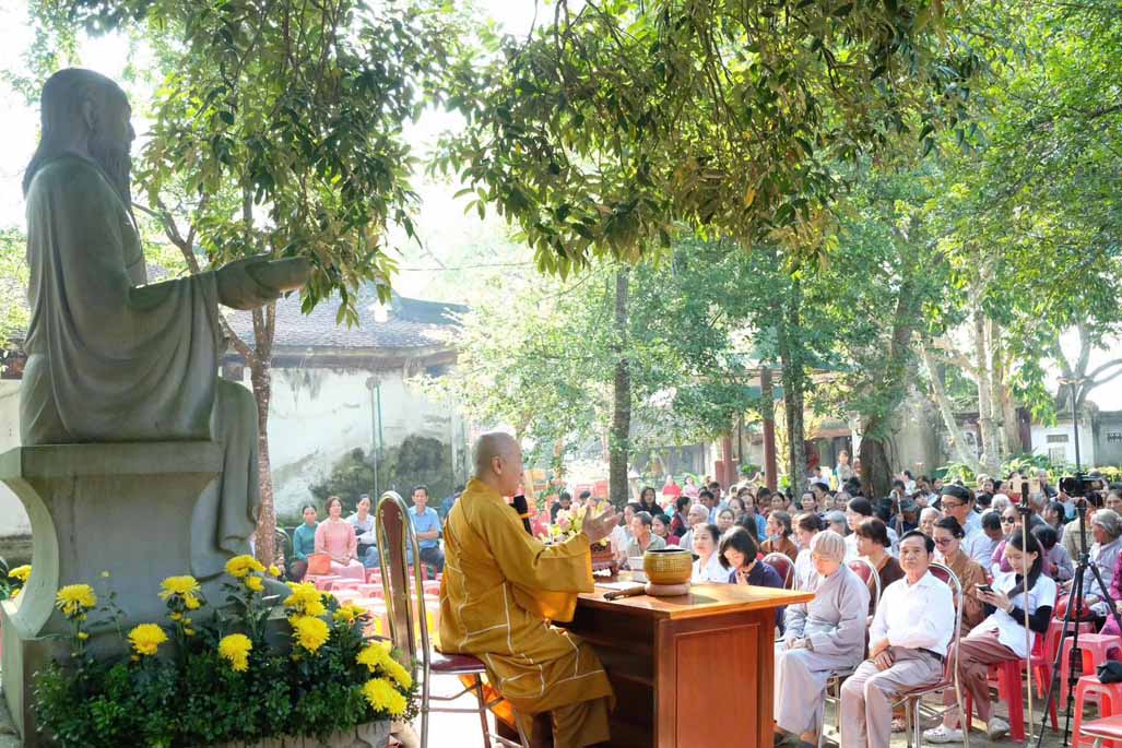 Điểm đặc biệt của chương trình là thời pháp được tổ chức trang nghiêm dưới tán cây vải cổ thụ hơn 300 năm tuổi do chính Hải Thượng Lãn Ông trồng lúc sinh thời. Không gian thanh tịnh, mát lành nơi tượng đài tưởng niệm càng làm tăng thêm chiều sâu tri ân, gợi nhắc hậu thế về đạo đức, trí tuệ và lòng nhân ái của bậc danh y lỗi lạc.