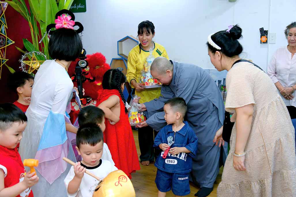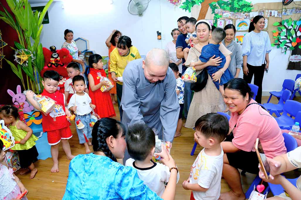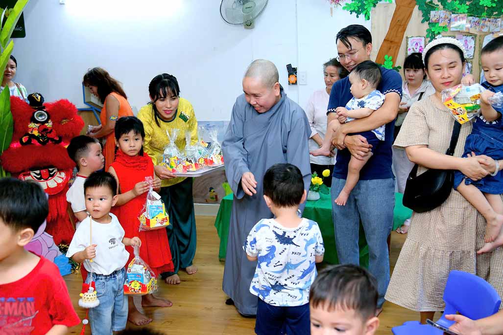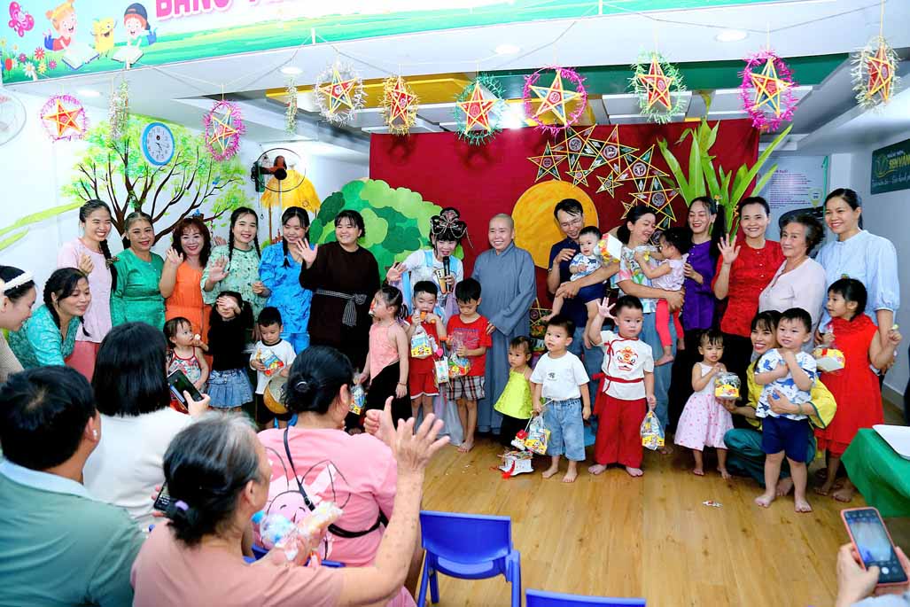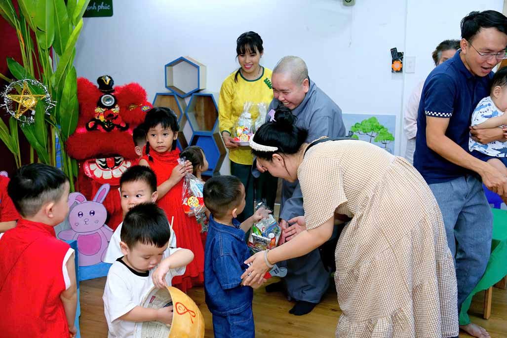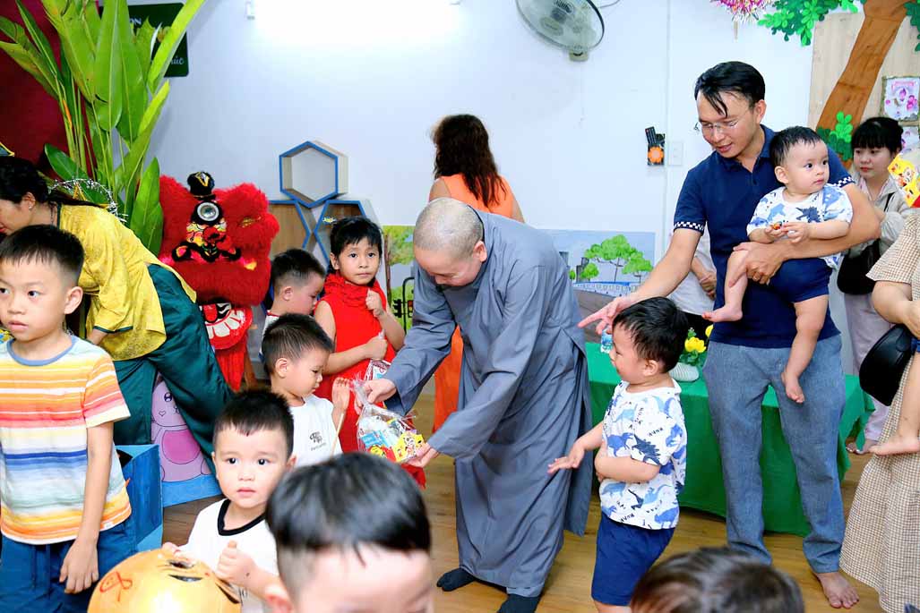Đặc biệt, Ni sư Tiến sĩ Thích Như Nguyệt – Phó Viện trưởng, Trưởng khoa Giáo dục mầm non Học viện Phật giáo Việt Nam tại TP. Hồ Chí Minh, Nhà sáng lập Hệ thống Mầm non Sen Vàng, đã đến tham dự ngày hội, gửi lời chúc yêu thương và trao tặng nhiều phần quà ý nghĩa đến các bé. Sự hiện diện của Ni sư là nguồn động viên quý báu, tiếp thêm niềm vui và lan tỏa giá trị nhân văn sâu sắc đến tập thể nhà trường, phụ huynh và học sinh.