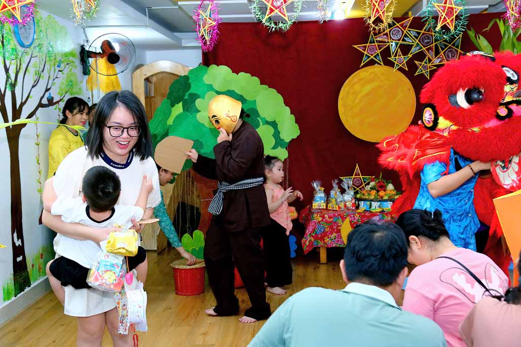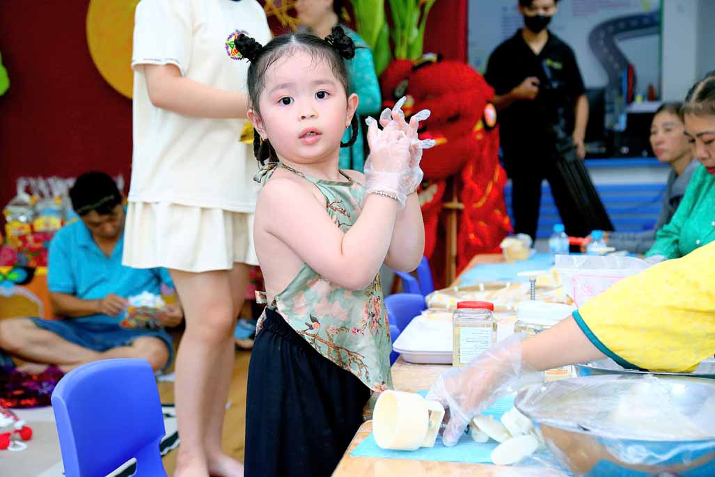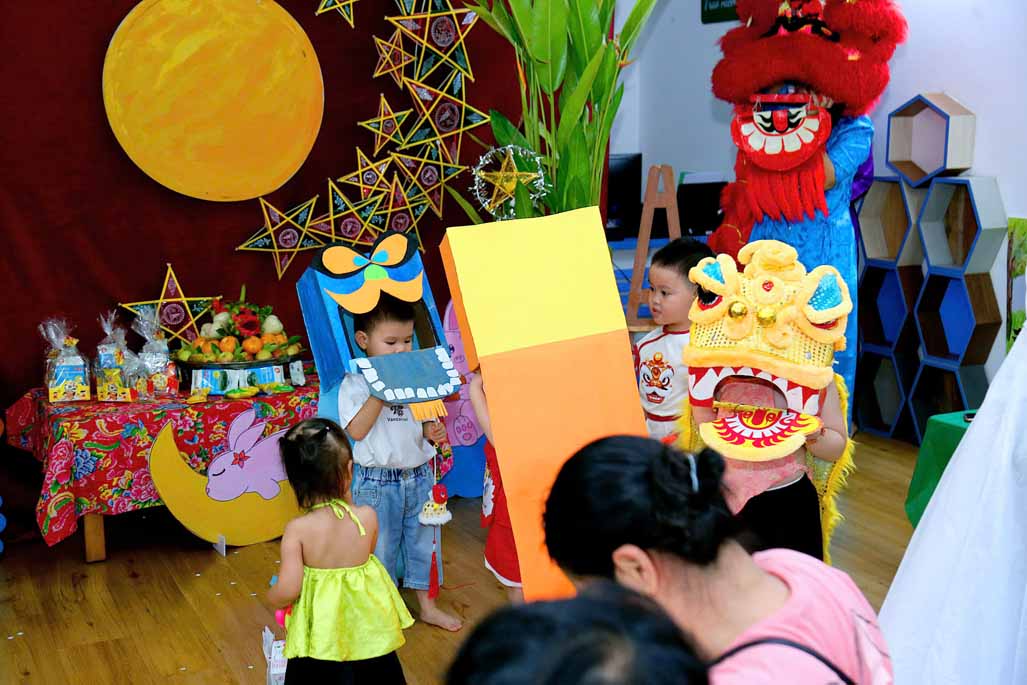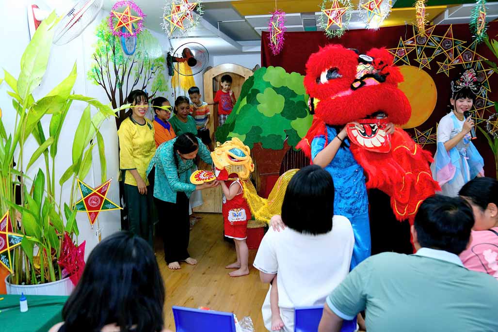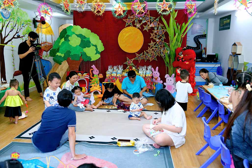 Trong không gian Trung thu rực rỡ sắc màu, các bé cùng ba mẹ và cô giáo đã tham gia nhiều hoạt động trải nghiệm vô cùng thú vị: Trang trí lồng đèn Trung thu mang đậm dấu ấn sáng tạo của từng gia đình. Tự tay làm bánh dẻo truyền thống, học thêm nhiều điều mới lạ về văn hóa Trung thu Việt Nam. Hào hứng với màn múa lân sôi động, không khí lễ hội thêm náo nhiệt và tưng bừng. Gặp gỡ và vui chơi cùng chị Hằng và chú Cuội, hòa mình vào những câu chuyện cổ tích và trò chơi dân gian đầy tiếng cười.