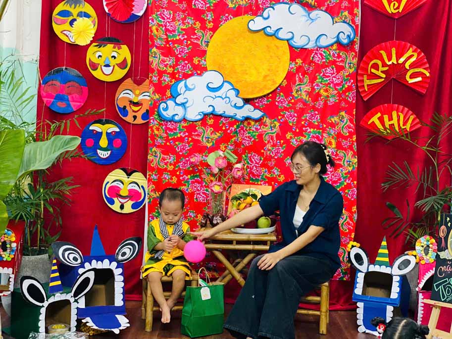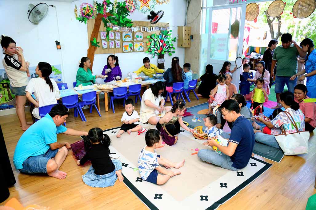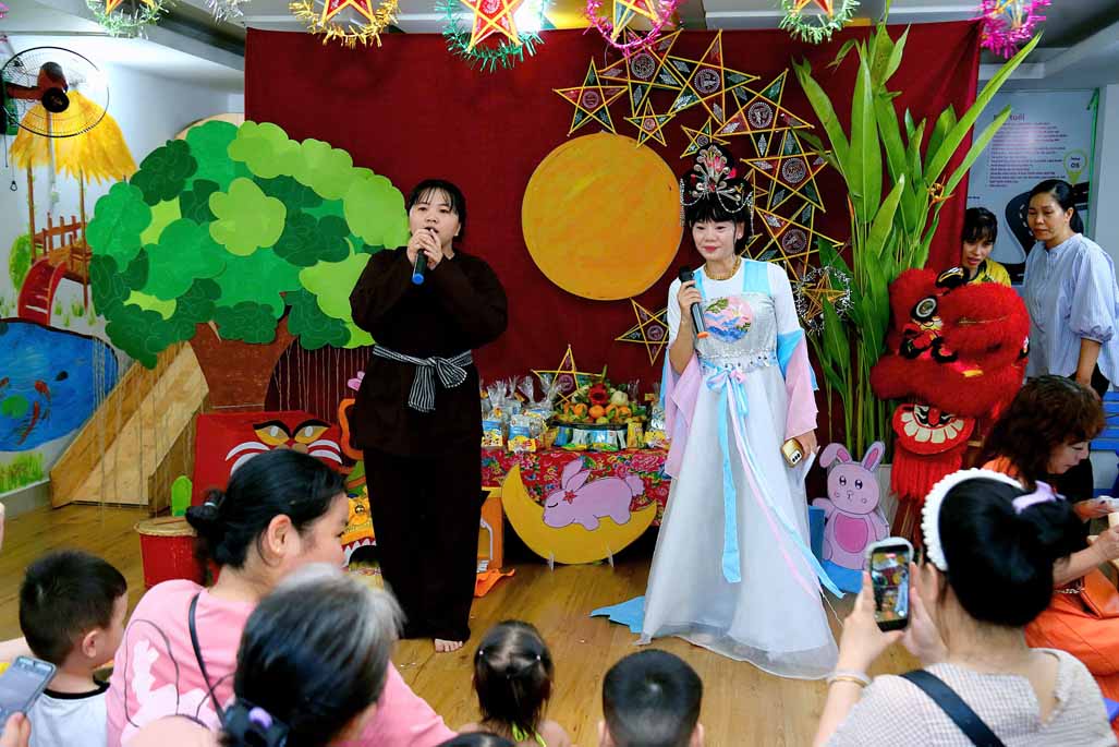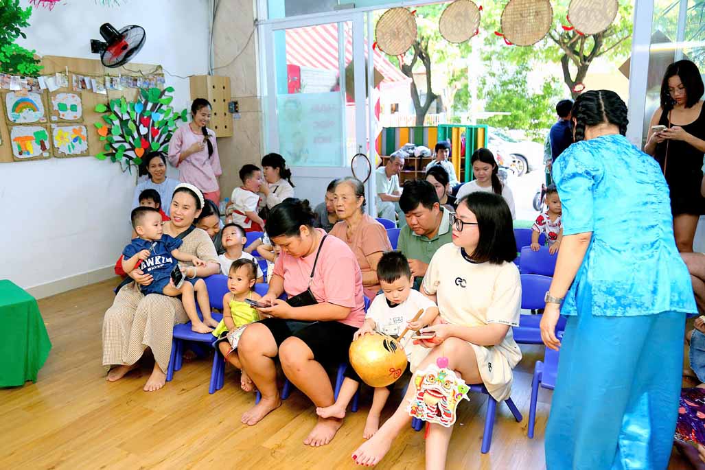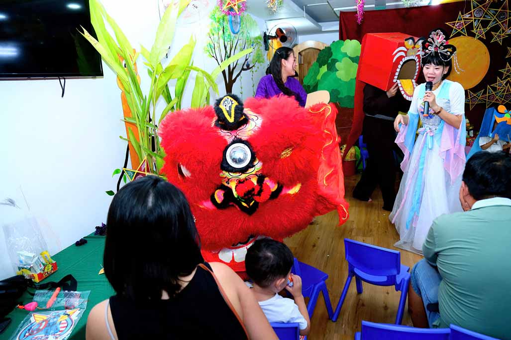 Trong không gian Trung thu rực rỡ sắc màu, các bé cùng ba mẹ và cô giáo đã tham gia nhiều hoạt động trải nghiệm vô cùng thú vị: Trang trí lồng đèn Trung thu mang đậm dấu ấn sáng tạo của từng gia đình. Tự tay làm bánh dẻo truyền thống, học thêm nhiều điều mới lạ về văn hóa Trung thu Việt Nam. Hào hứng với màn múa lân sôi động, không khí lễ hội thêm náo nhiệt và tưng bừng. Gặp gỡ và vui chơi cùng chị Hằng và chú Cuội, hòa mình vào những câu chuyện cổ tích và trò chơi dân gian đầy tiếng cười.