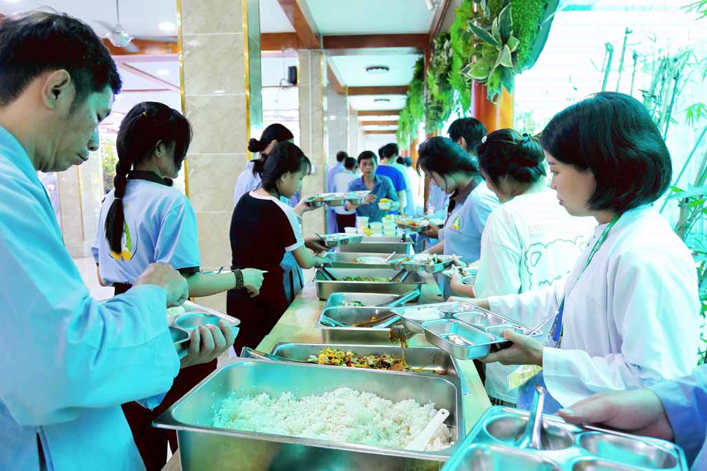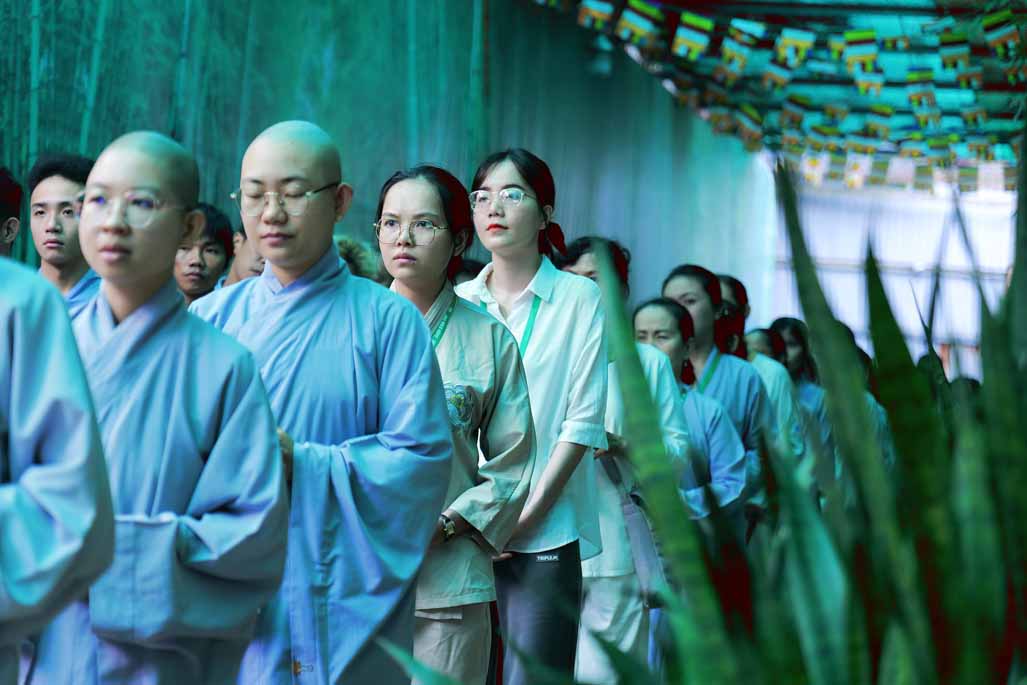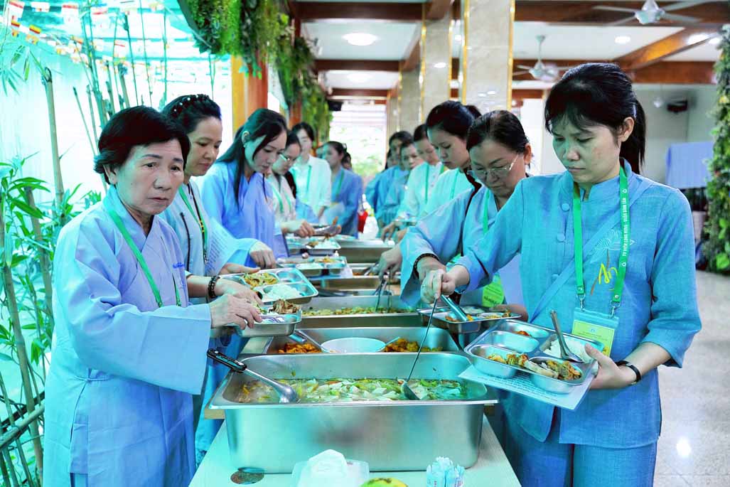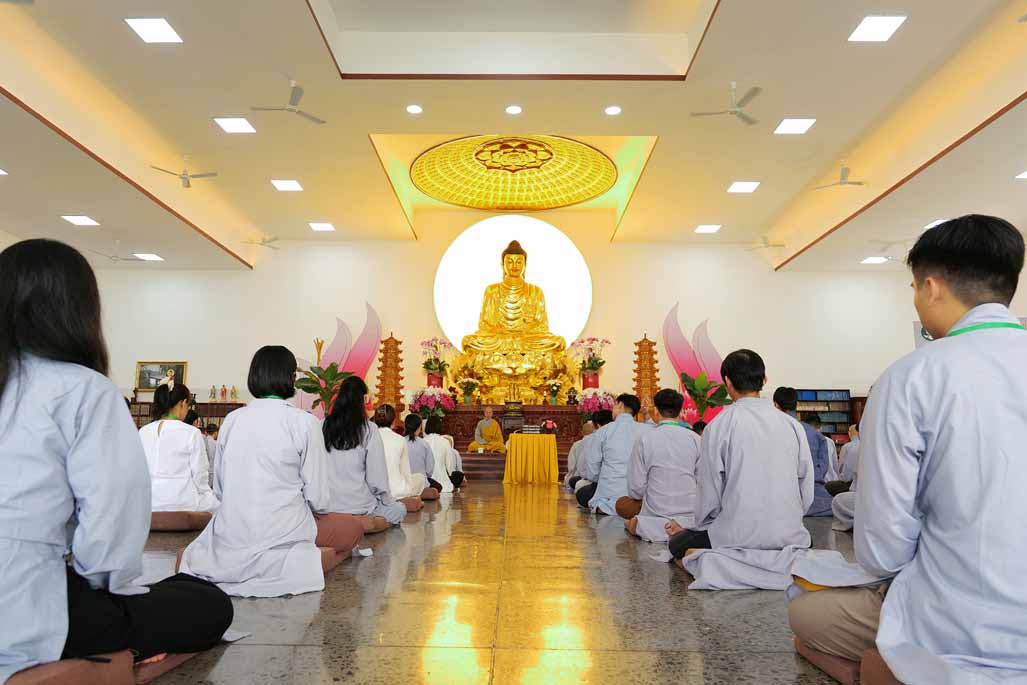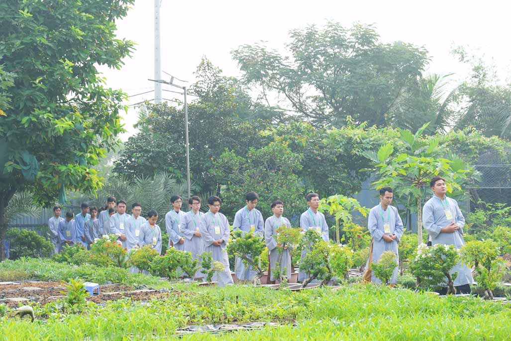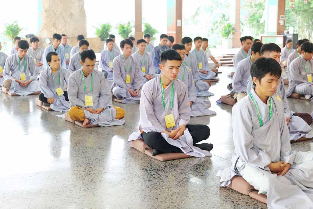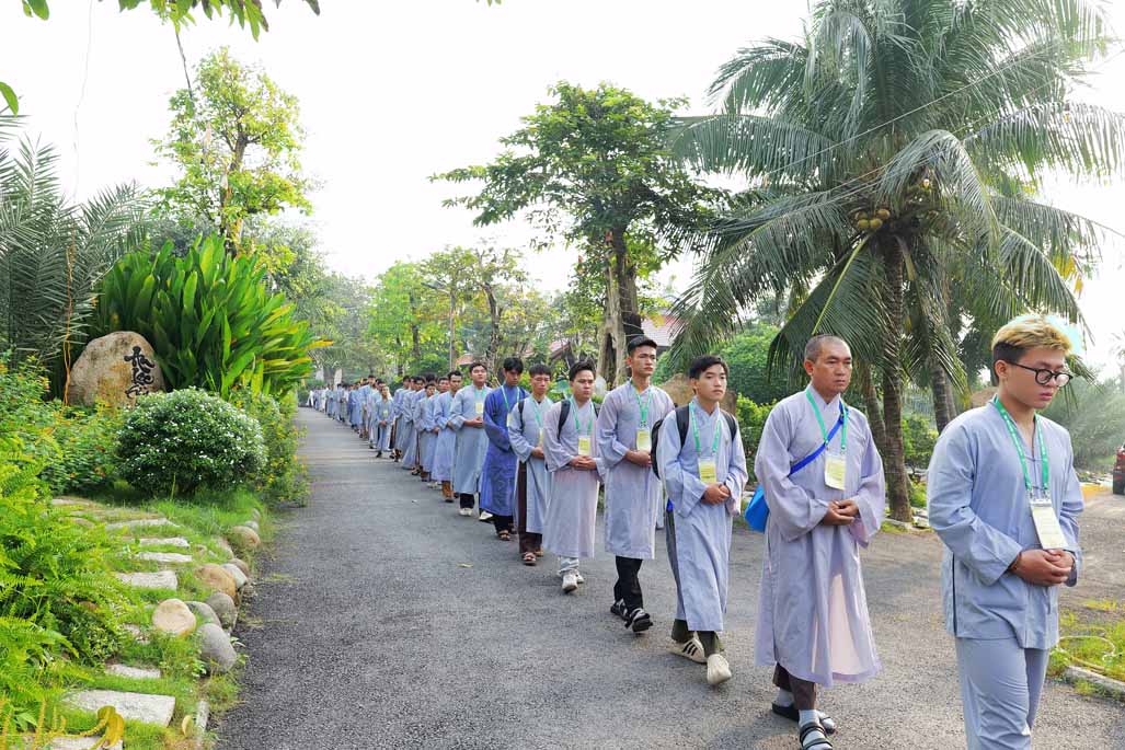 Xen kẽ giữa các thời thiền, đại chúng cùng tụng kinh, dùng cơm chánh niệm và sinh hoạt chia sẻ. Không gian rộng rãi, nhiều cây xanh, tượng Phật uy nghiêm của Tu viện Long Hưng đã trở thành môi trường lý tưởng để các Phật tử trẻ – đặc biệt là hơn 70 nam hành giả – tạm gác lại nhịp sống vội vã, trở về học cách làm chủ thân tâm.