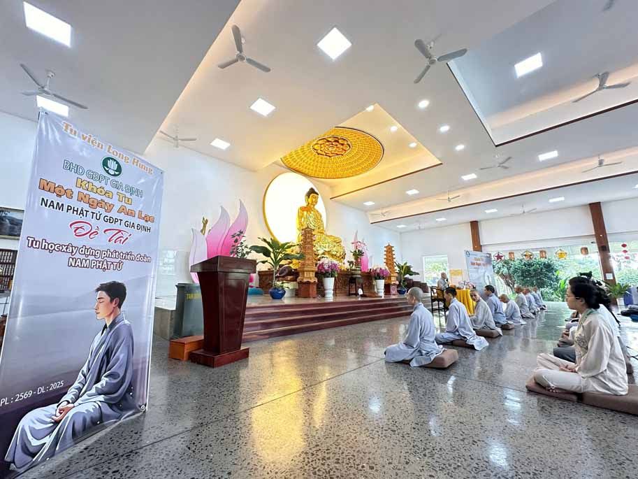 Sáng ngày 16/ 11/ 2025, Ngày tu “Một Ngày An Lạc” dành cho Nam Phật tử GĐPT Gia Định vừa được tổ chức tại Tu viện Long Hưng (TP. HCM) trong không khí trang nghiêm, thanh tịnh. Khóa tu quy tụ hơn 100 hành giả, trong đó có trên 70 hành giả là nam huynh trưởng, đoàn sinh GĐPT cùng quý Phật tử hữu duyên về tu viện thực tập chánh niệm, gieo duyên lành với Phật pháp.