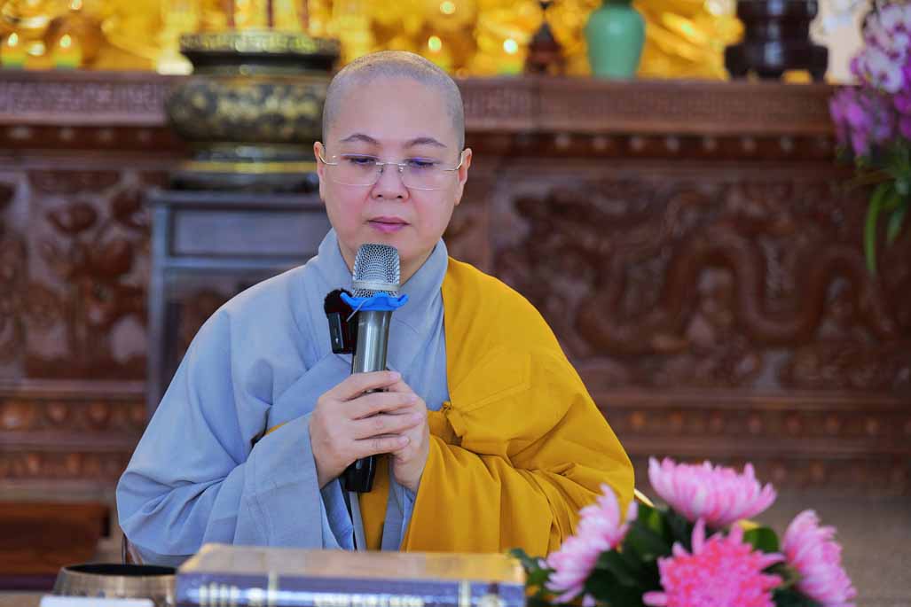 Trong phần hướng dẫn thiền tọa, Ni sư nhấn mạnh hơi thở là đề mục chính, là sợi dây nối ta với sự sống. Chỉ cần 5–10 phút ngồi yên trong không gian yên tĩnh, theo dõi hơi thở ra vào nơi cửa mũi, không chạy theo tạp niệm, hành giả đã có thể chạm lại sự bình an vốn có nơi mình. Ni sư khuyến khích các Phật tử đem pháp hành này vào đời sống hằng ngày: thực tập thiền khi làm việc, khi nghe điện thoại, trước khi đi ngủ; dùng chánh niệm để điều phục thân tâm, giảm bớt áp lực và phiền não.