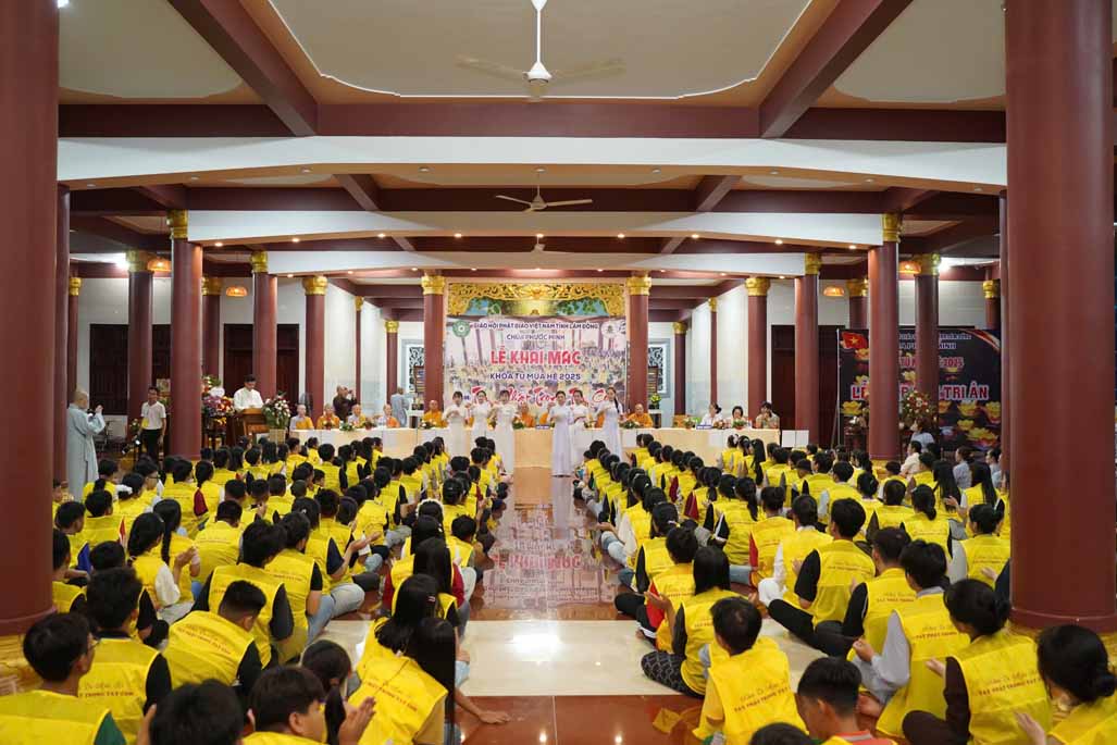 Phát biểu khai mạc, SC. Thích nữ Nguyên Minh chia sẻ: “với mong muốn giúp các bạn trẻ an trú trong chánh niệm, phát triển tinh thần tỉnh thức và thực hành từ bi thông qua các hoạt động thiền tập, pháp thoại và sinh hoạt nhóm. Khóa tu mùa hè năm nay nhận được sự chứng minh của Hòa thượng Thích Minh Nhật – UV HĐTS GHPGVN, Trưởng BTS GHPGVN tỉnh Lâm Đồng cùng chư Tôn đức Ban Hoằng pháp GHPGVN tỉnh Bình Thuận (cũ) hứa hẹn sẽ mang đến cho các bạn tu sinh những ngày tu học bổ ích và ý nghĩa”.