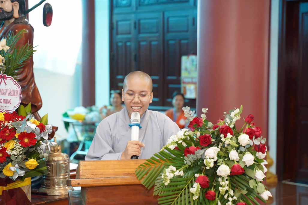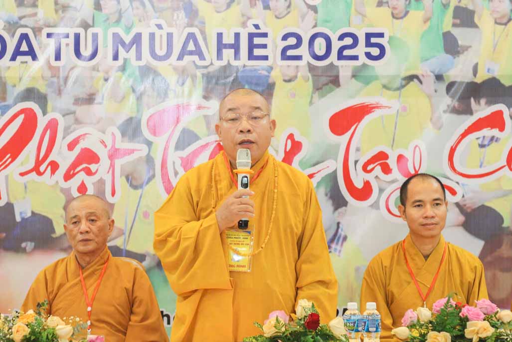 Đạo từ chứng minh, TT. Thích Pháp Huệ bày tỏ niềm hoan hỷ, tán thán công hạnh của sư cô trụ trì cùng chư Tôn đức ban tổ chức đã xây một khóa tu học hè ý nghĩa thiết thực dành cho thế hệ tương lai của đất nước nói chung và đạo pháp nói riêng. Bên cạnh đó, Thượng tọa cũng ân cần khuyến tấn đến các bạn trẻ cần chăm ngoan tu học trọn vẹn 3 ngày khóa tu diễn ra.