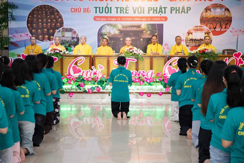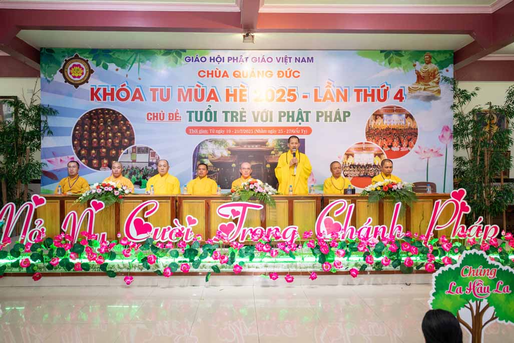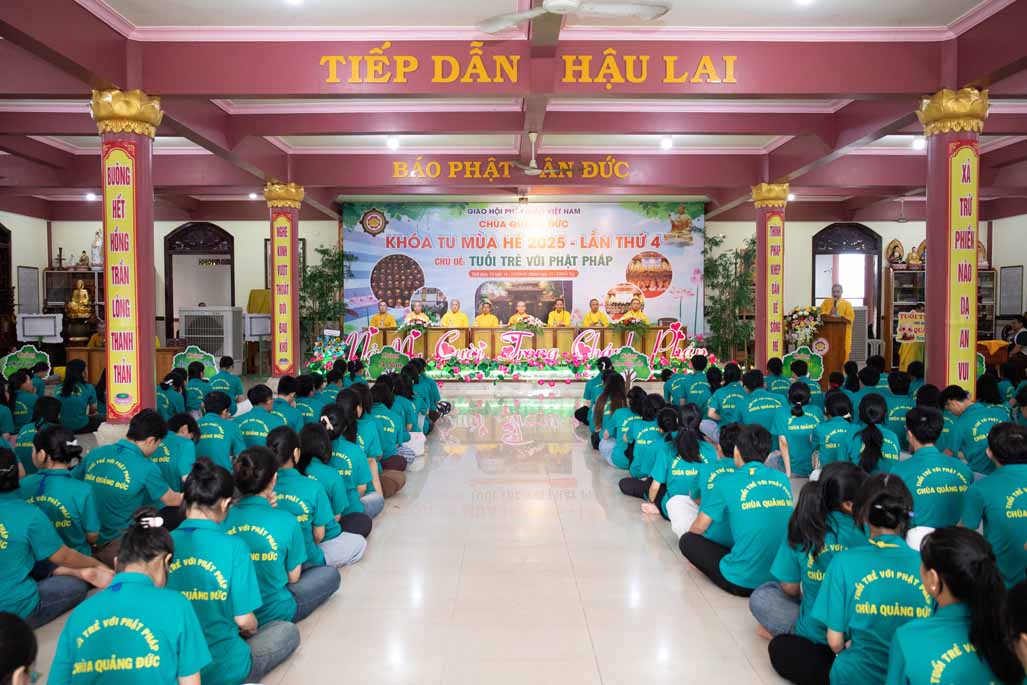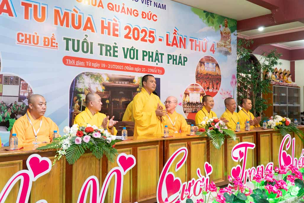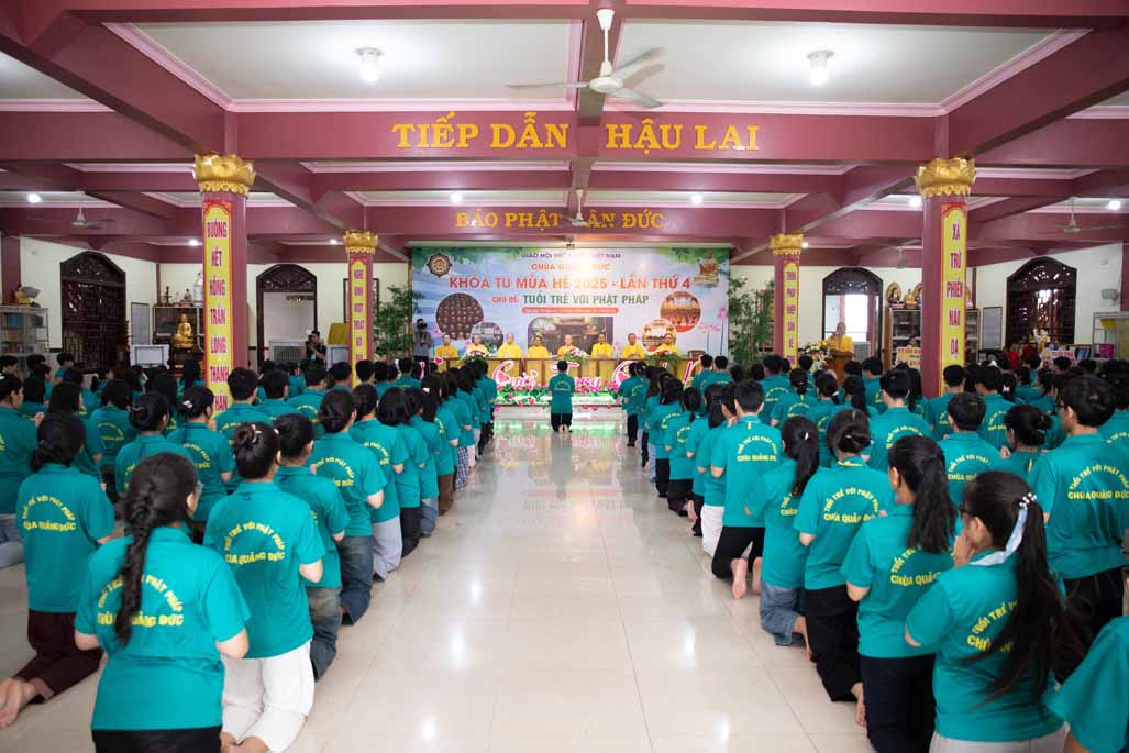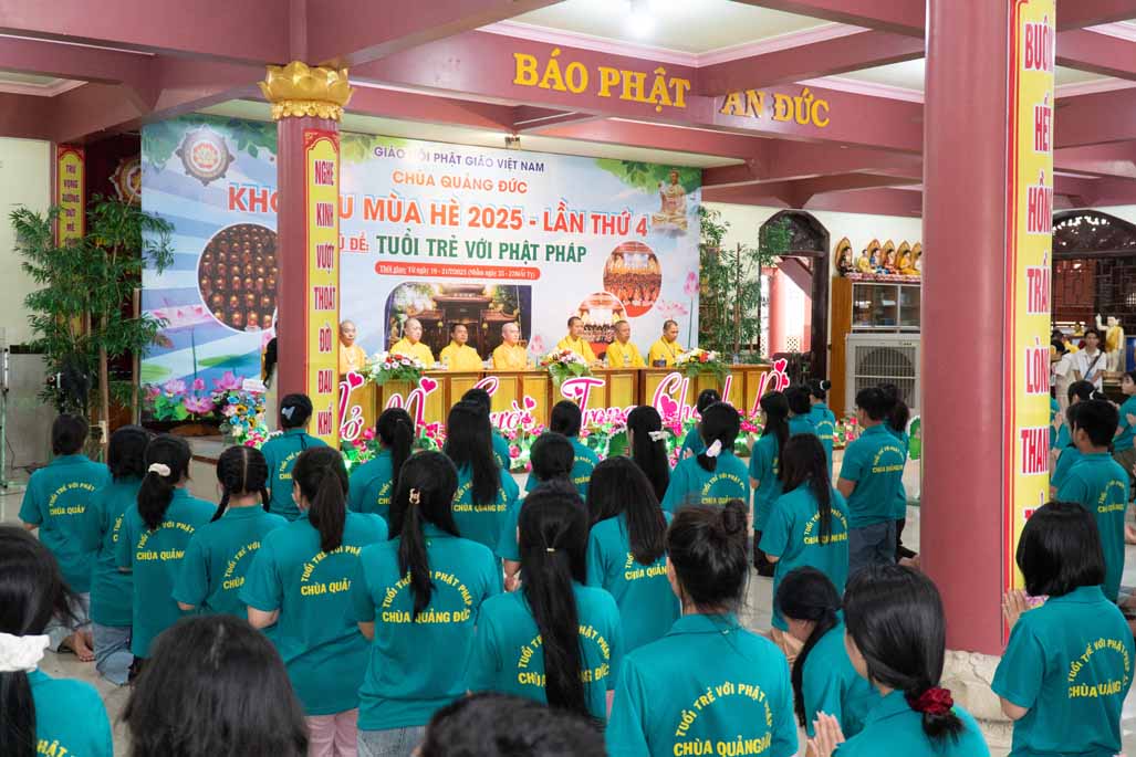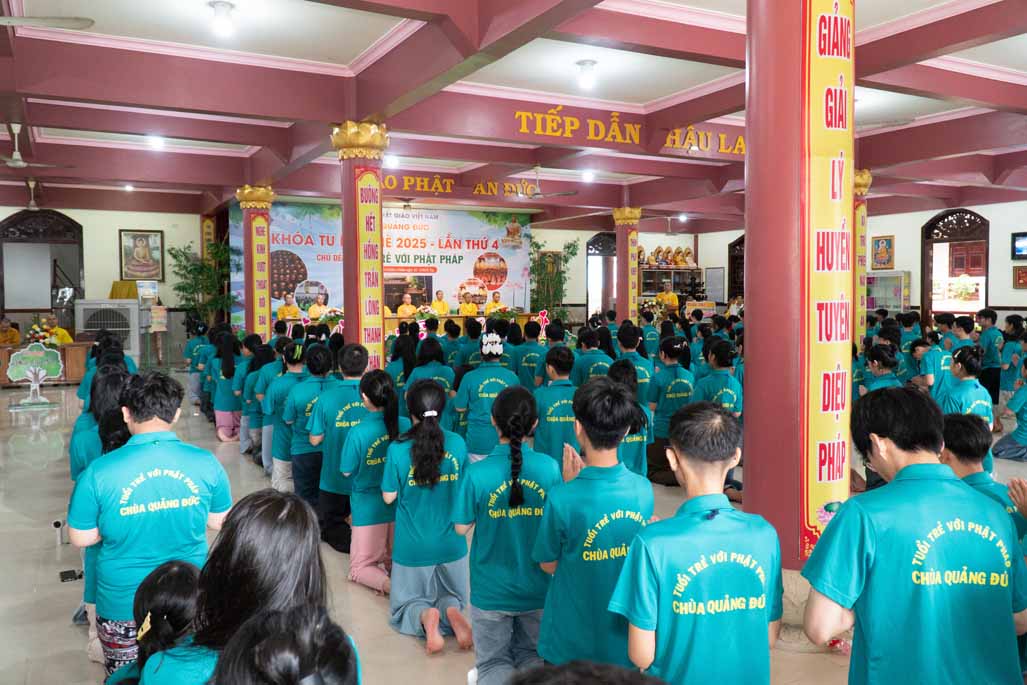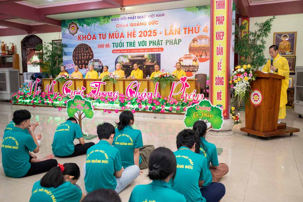 Chiều ngày 21/ 07/ 2025 (27 tháng 6 năm Ất Tỵ), khóa tu mùa hè “Tuổi trẻ với Phật pháp” lần thứ tư tại chùa Quảng Đức, Phường Phước Hội, tỉnh Lâm Đồng (khu vực La Gi – Bình Thuận cũ) đã chính thức bế mạc, đánh dấu ba ngày tu học ý nghĩa và thành công viên mãn. Buổi lễ bế mạc diễn ra trong không khí trang nghiêm và thấm tình đạo vị.