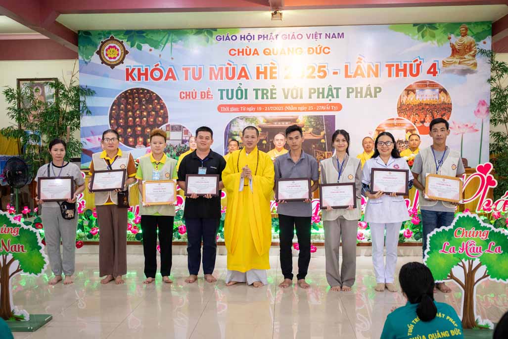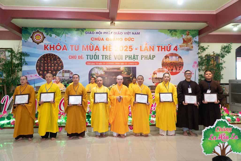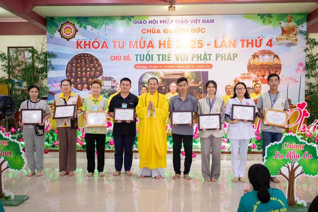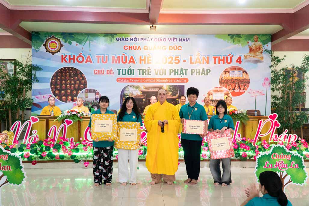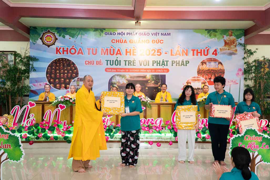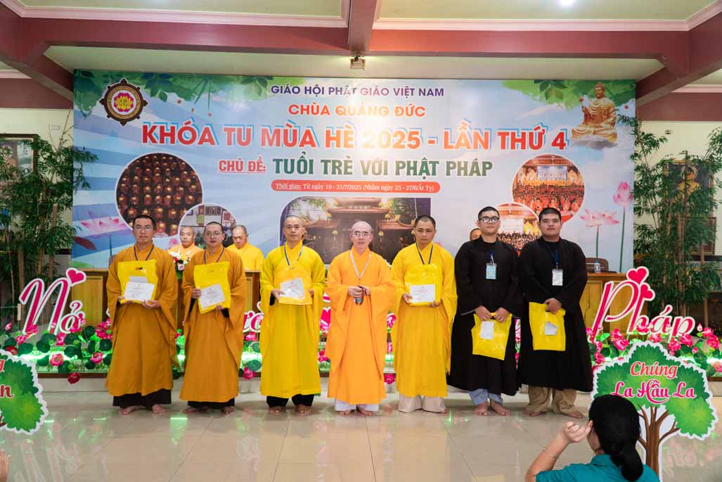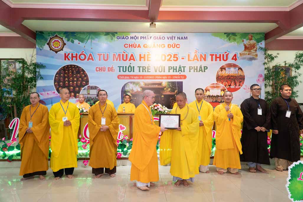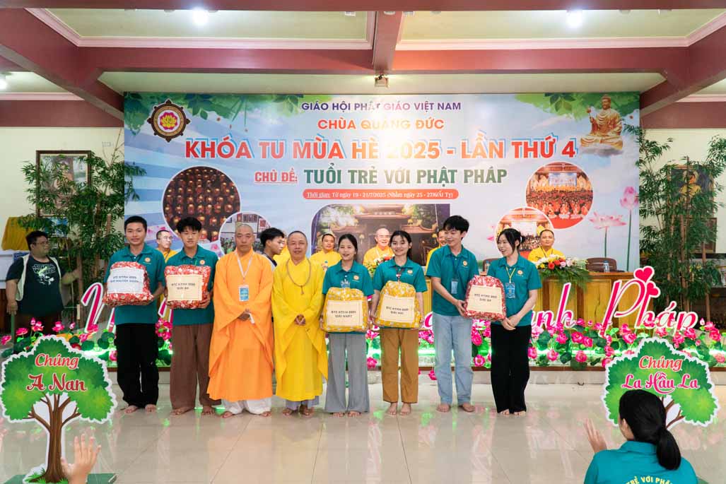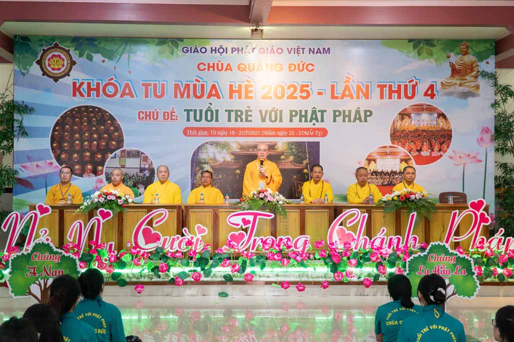 Chiều ngày 21/ 07/ 2025 (27 tháng 6 năm Ất Tỵ), khóa tu mùa hè “Tuổi trẻ với Phật pháp” lần thứ tư tại chùa Quảng Đức, Phường Phước Hội, tỉnh Lâm Đồng (khu vực La Gi – Bình Thuận cũ) đã chính thức bế mạc, đánh dấu ba ngày tu học ý nghĩa và thành công viên mãn. Buổi lễ bế mạc diễn ra trong không khí trang nghiêm và thấm tình đạo vị.