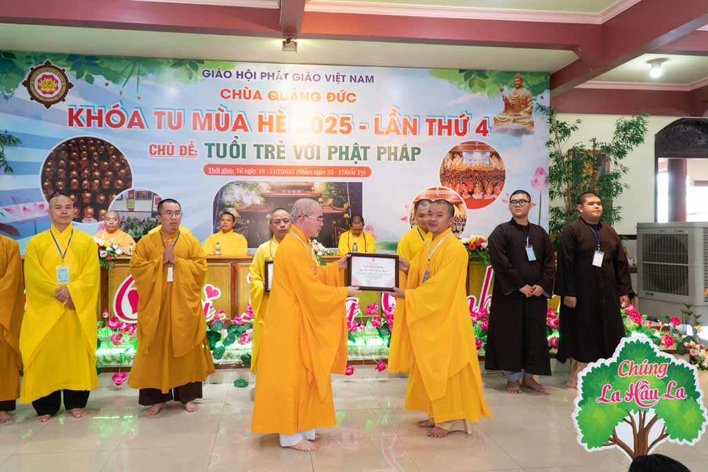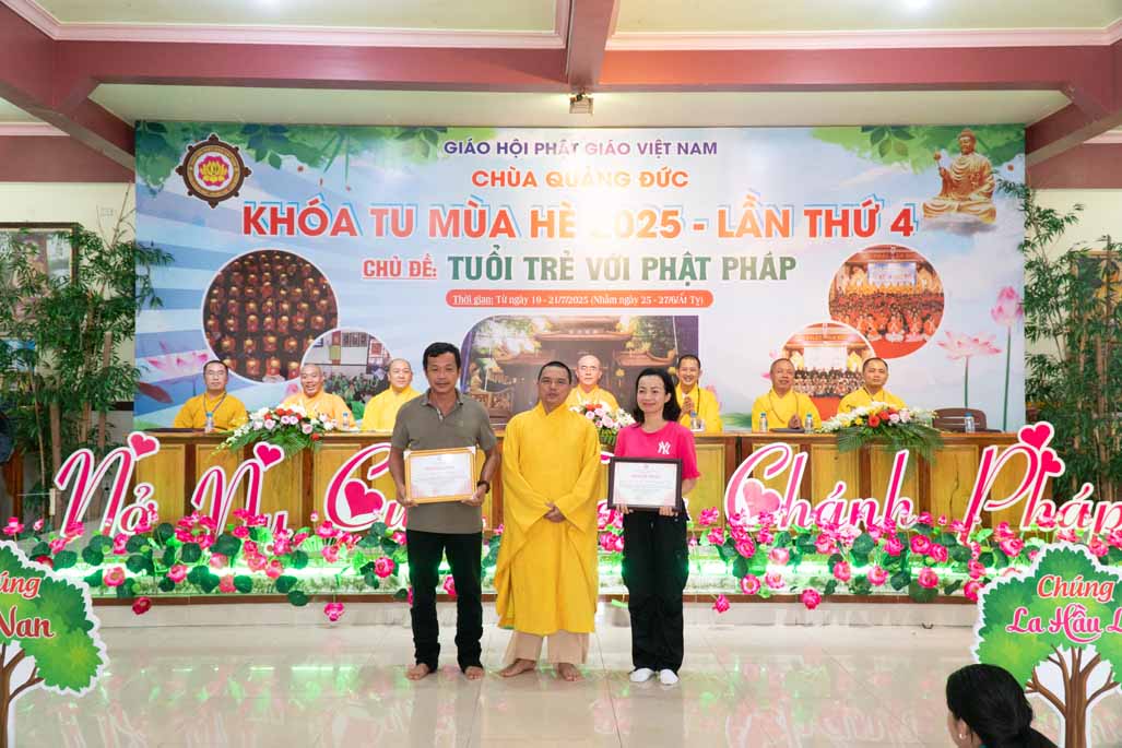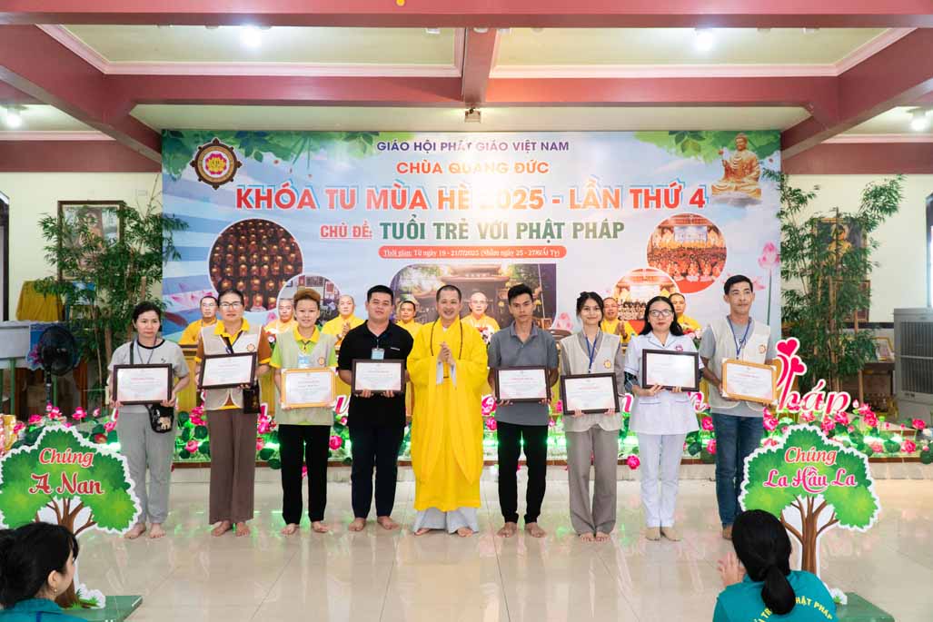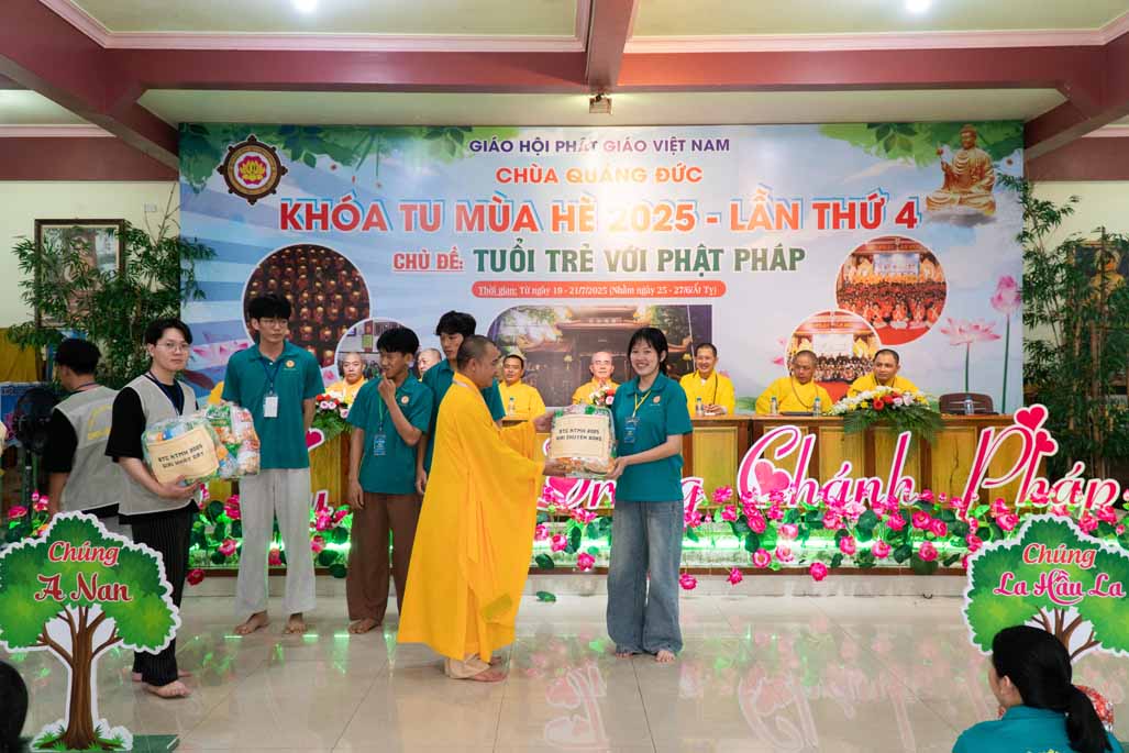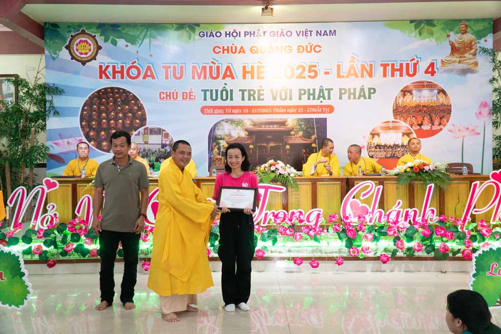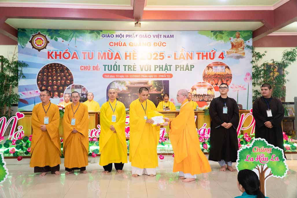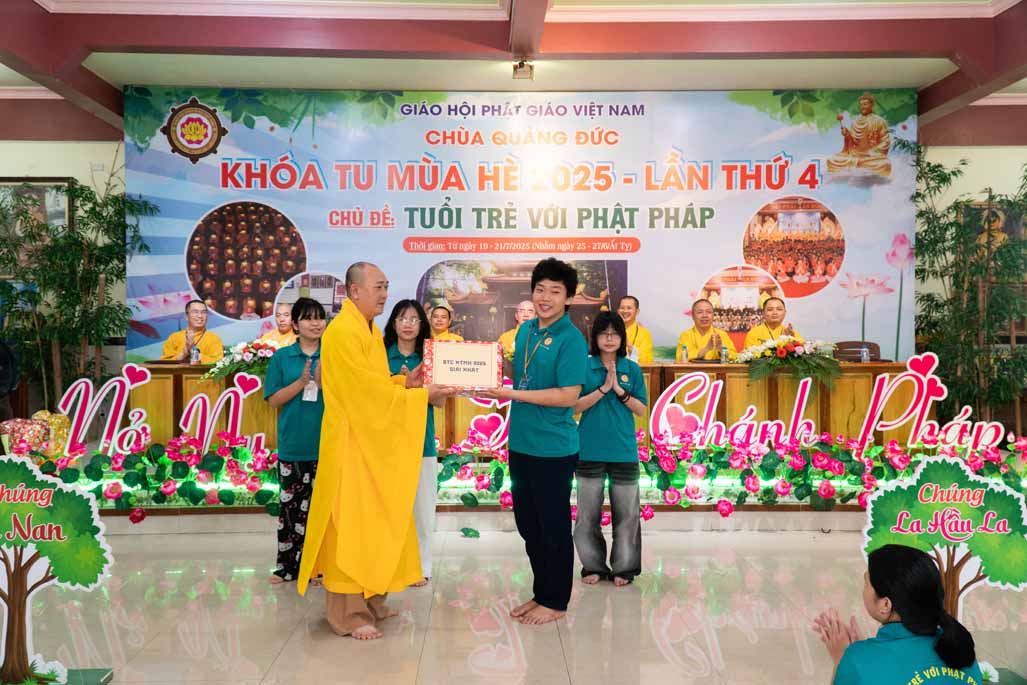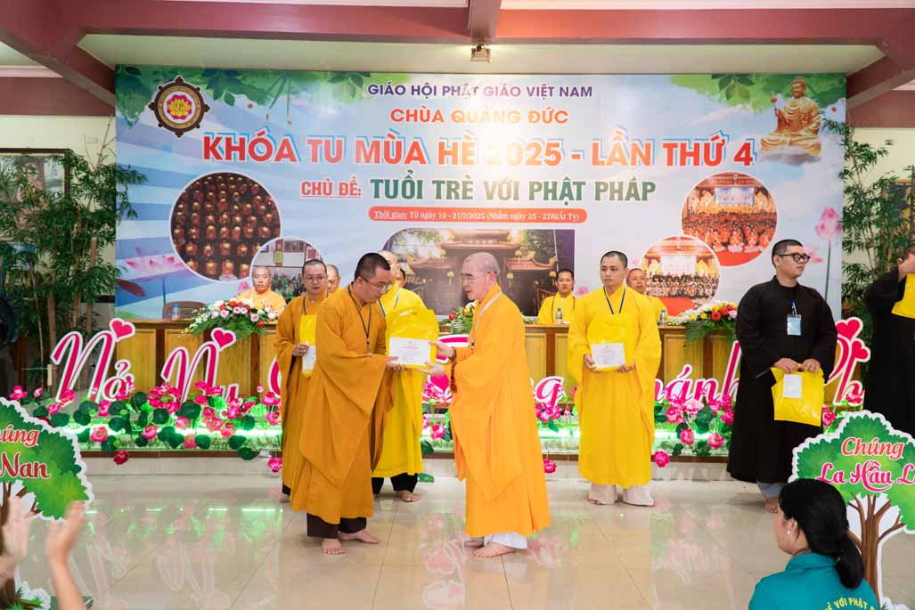 Chiều ngày 21/ 07/ 2025 (27 tháng 6 năm Ất Tỵ), khóa tu mùa hè “Tuổi trẻ với Phật pháp” lần thứ tư tại chùa Quảng Đức, Phường Phước Hội, tỉnh Lâm Đồng (khu vực La Gi – Bình Thuận cũ) đã chính thức bế mạc, đánh dấu ba ngày tu học ý nghĩa và thành công viên mãn. Buổi lễ bế mạc diễn ra trong không khí trang nghiêm và thấm tình đạo vị.