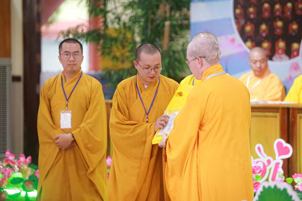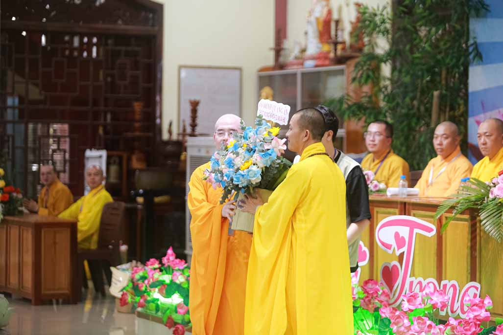 Trong niềm hoan hỷ chung, Đại đức Thích Nguyên Quả từ Tổ Đình Quảng Ân đã gửi lời chúc mừng chân thành và trang trọng dâng những lẵng hoa tươi thắm đến Ban Tổ chức, đồng thời thành kính cúng dường giác linh Hòa thượng Viện chủ.