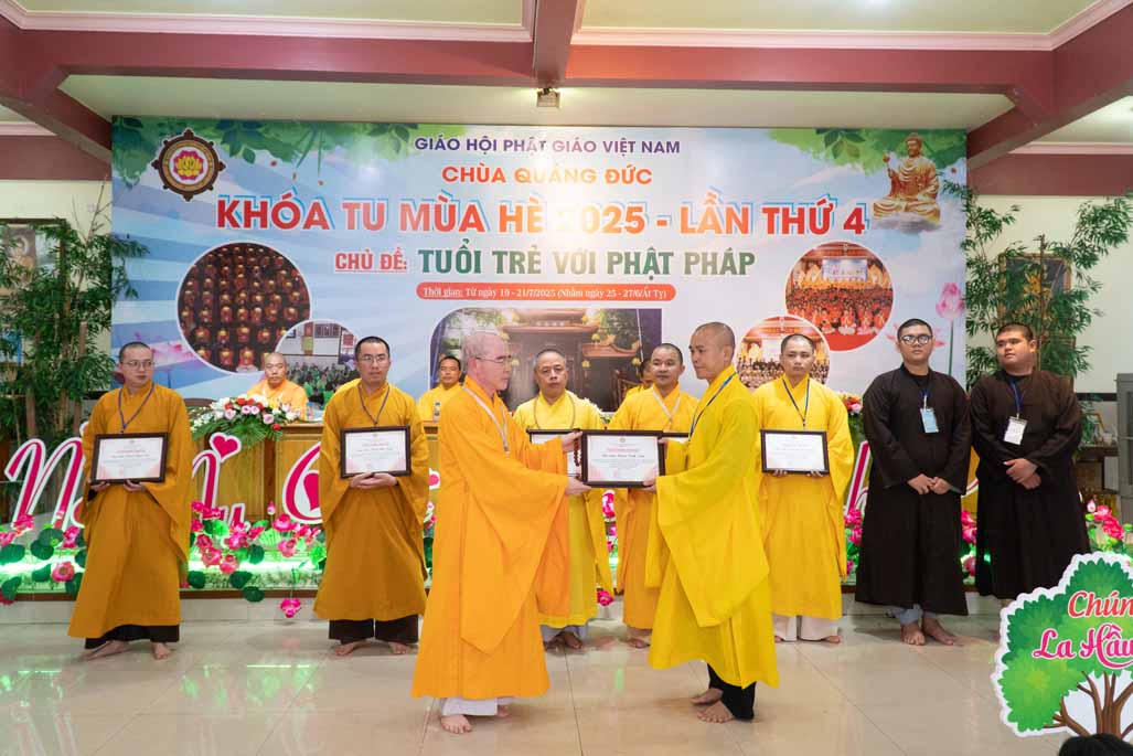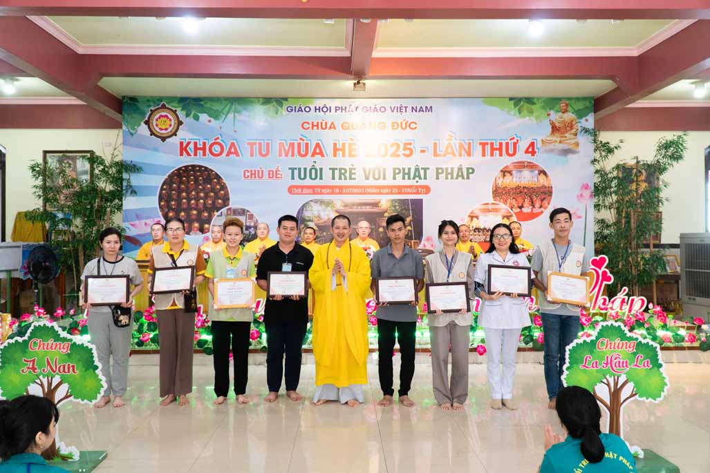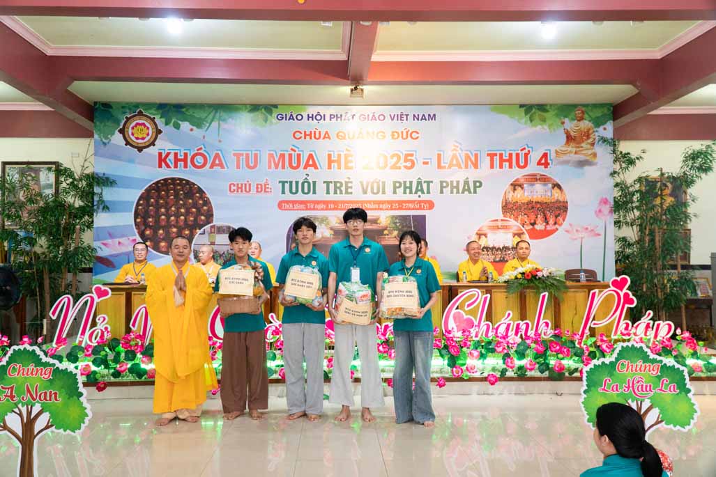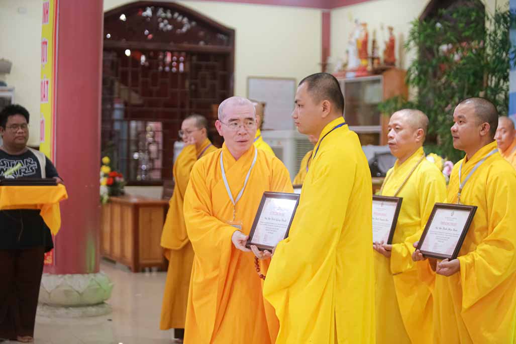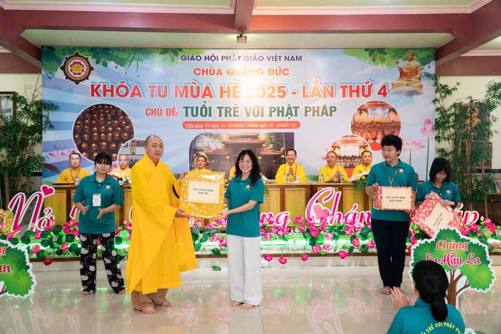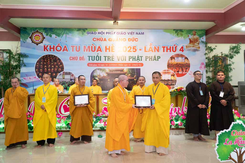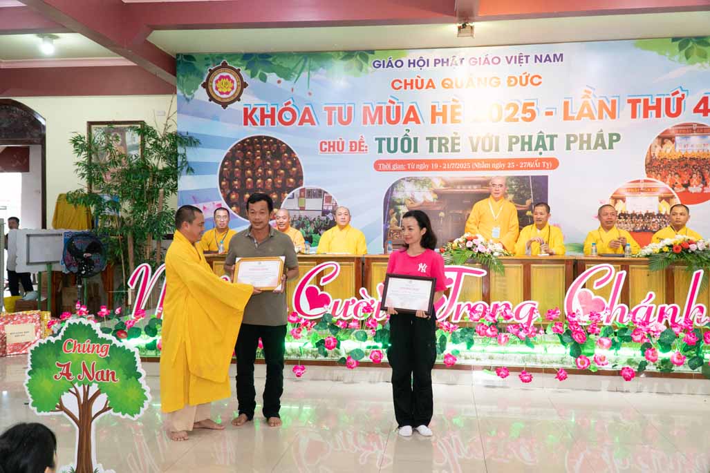 Nhằm ghi nhận những đóng góp thiết thực và khuyến khích tinh thần tu học, Ban Tổ chức đã trao tặng kỷ niệm chương đến quý vị trong các tiểu ban đã tận tâm hỗ trợ. Đồng thời, những phần thưởng về việc tu học xuất sắc, sáng tạo cũng đã được trao, khích lệ các em tiếp tục phát huy tinh thần học hỏi và rèn luyện.
