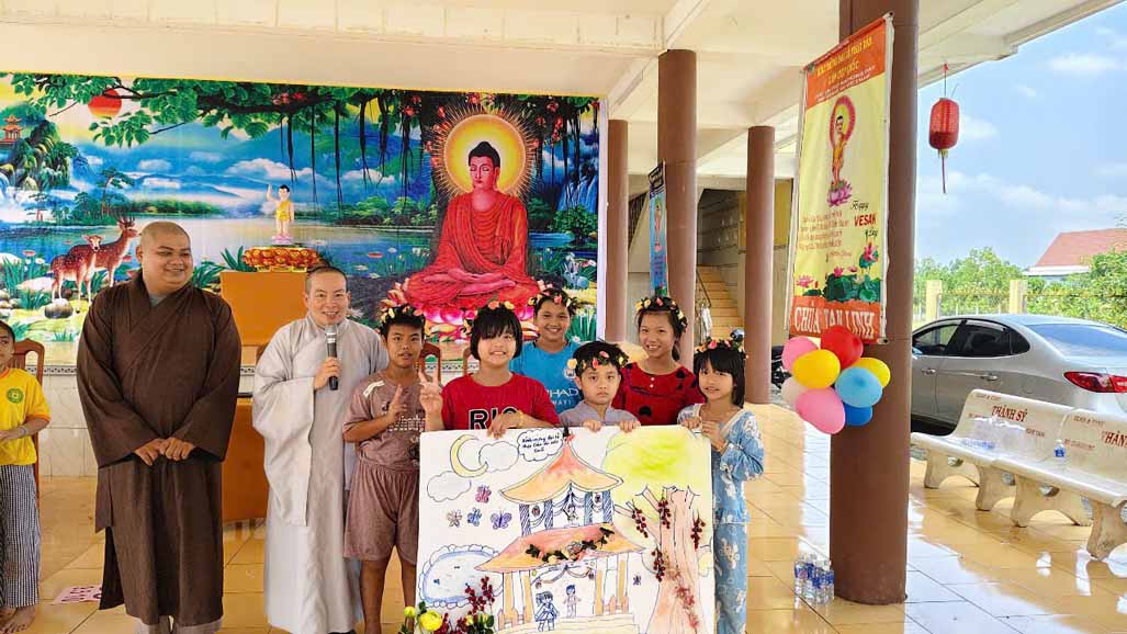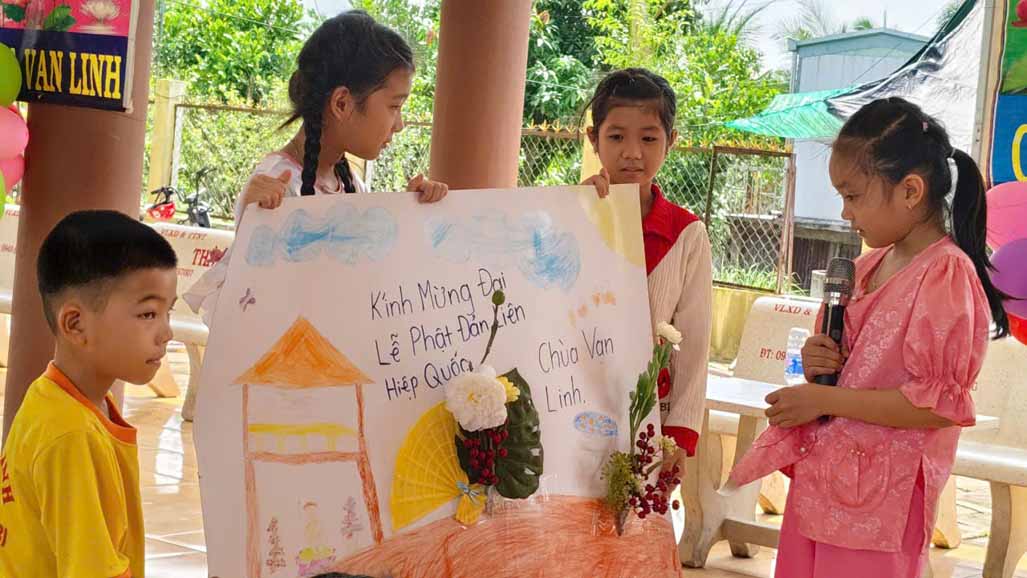 Mở đầu chuỗi hoạt động trong ngày là phần thi vẽ tranh và thuyết trình chào mừng Đại lễ Vesak. Với chủ đề tôn vinh cuộc đời và giáo lý của Đức Phật, các bạn trẻ đã thể hiện sự sáng tạo và hiểu biết sâu sắc qua từng nét vẽ và phần trình bày đầy cảm xúc. Những tác phẩm không chỉ mang đậm màu sắc Phật giáo, mà còn gửi gắm thông điệp về từ bi, trí tuệ và hòa bình cho nhân loại.