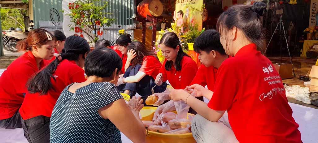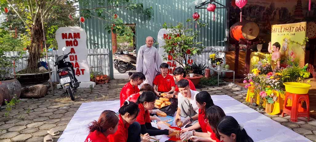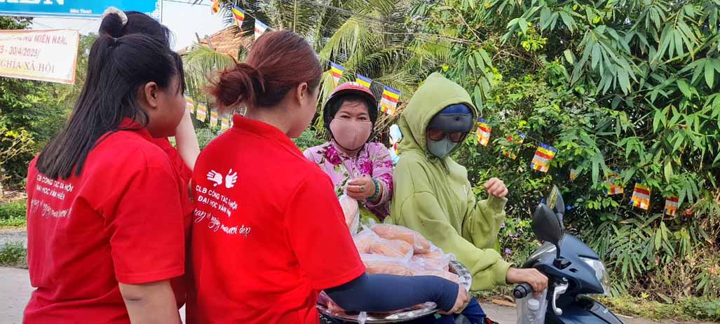 Bên cạnh đó, những phần bánh mì chay nghĩa tình cũng được trao tận tay cho người dân và người đi đường – một hành động nhỏ nhưng chứa đựng giá trị lớn về lòng từ bi. Ông Phạm Văn Bắc – Chủ tịch Hội Khuyến học xã Mỹ An đã đến tham dự và khích lệ tinh thần thiện nguyện. Tổng kinh phí cho chương trình buổi sáng được ghi nhận gần 13 triệu đồng, đến từ sự đóng góp của chư Phật tử và quý mạnh thường quân.