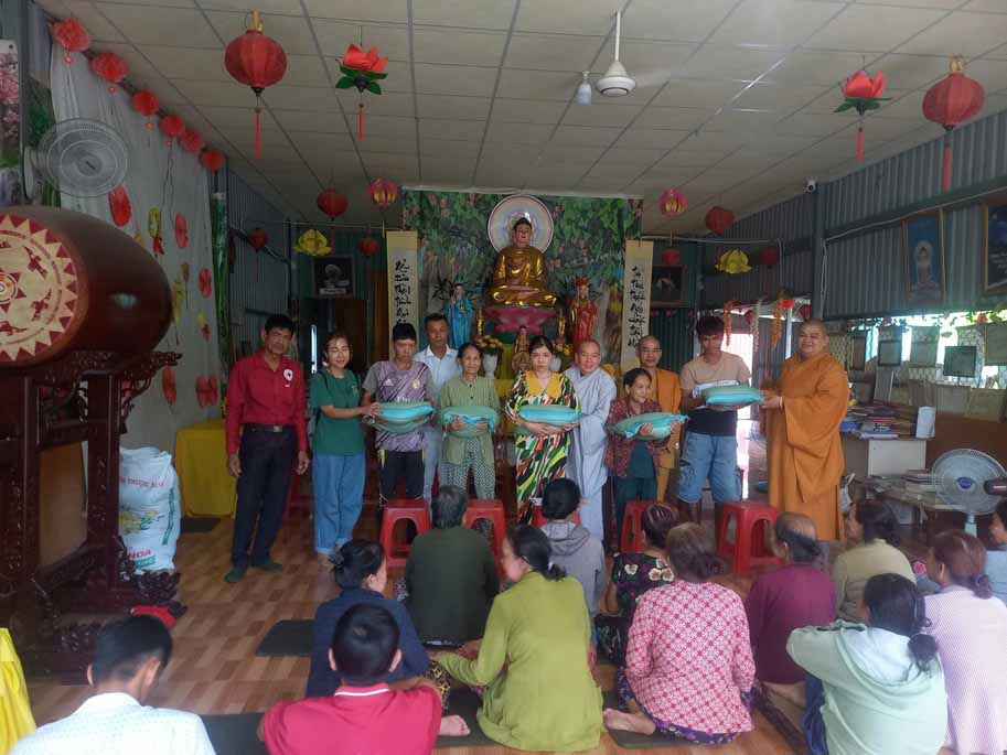 Sau đó, 30 phần quà từ thiện gồm các nhu yếu phẩm thiết thực đã được trao tặng đến các hộ nghèo, bệnh tật, người neo đơn trên địa bàn, với sự hiện diện của ông Trần Quí Chưởng – Chủ tịch Hội Chữ thập đỏ xã Mỹ An, Đại đức Thích Minh Tịnh – Chủ tịch Chi hội Nam Y Pháp Bảo Khỏe, cùng các nhà hảo tâm. Tổng kinh phí cho hoạt động từ thiện buổi lễ Phật đản gần 20 triệu đồng – là kết quả của sự chung tay, sẻ chia giữa nhà chùa, chính quyền và cộng đồng Phật tử.
