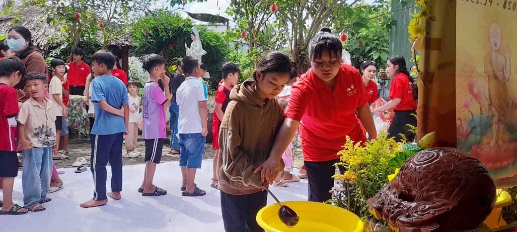 Buổi sáng – Niềm vui cho trẻ thơ, tình thương cho cộng đồng. Trong không khí trong lành của buổi sáng, chương trình dành riêng cho thiếu nhi đã tạo nên một không gian sinh hoạt vui tươi, mang đậm tính giáo dục với các trò chơi dân gian như ô chữ Phật pháp, ném bóng, nghi thức tắm Phật và các gian hàng ẩm thực chay thân thiện, gần gũi. Hơn 70 em nhỏ đã tham gia với niềm vui ánh lên trong ánh mắt, nụ cười hồn nhiên. Chương trình do nhóm sinh viên CLB Công tác xã hội Đại học Văn Hiến điều phối, góp phần mang tinh thần phụng sự đến từ tuổi trẻ.