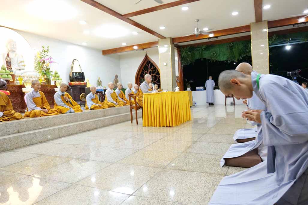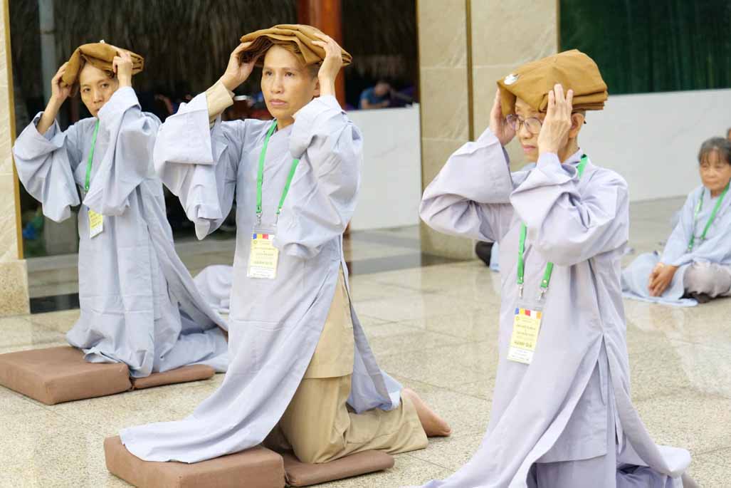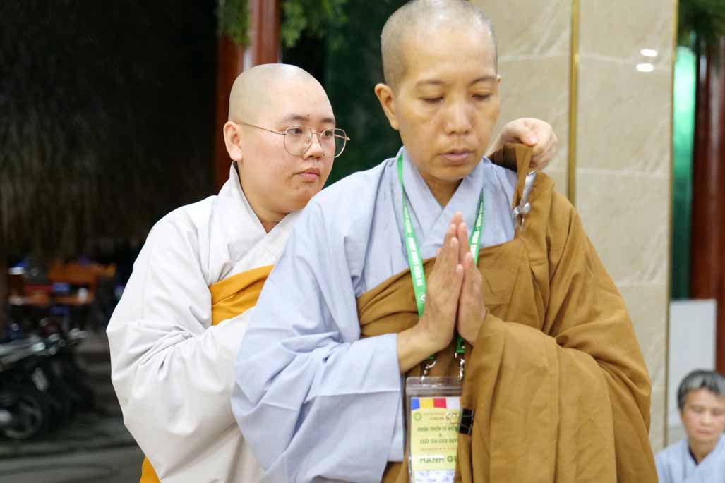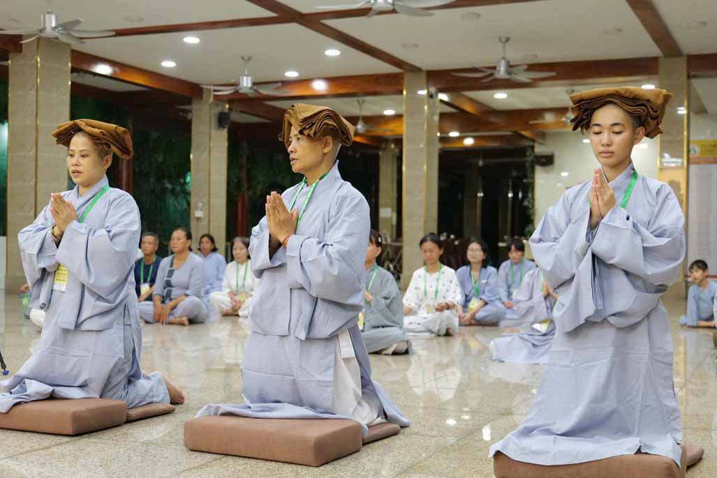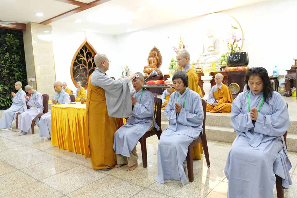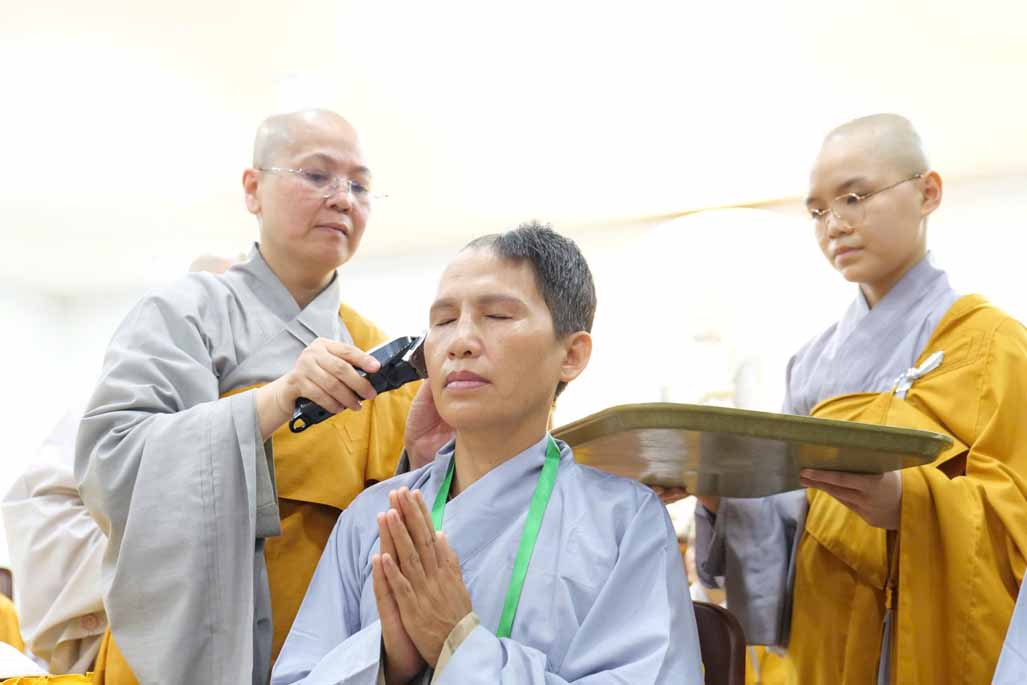 Sau thời khóa tụng kinh khai lễ, đại chúng đã trang nghiêm cử hành nghi thức thế phát xuất gia, cạo bỏ tóc đời, khởi đầu nếp sống phạm hạnh. Trong đó, 6 hành giả phát nguyện thọ giới Sa-di-ni, sống đúng oai nghi xuất sĩ suốt 10 ngày, và 40 hành giả tại gia phát tâm thọ trì Bát Quan Trai giới, hành trì thanh tịnh giữa đời thường.