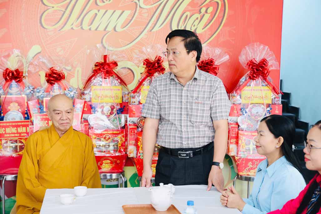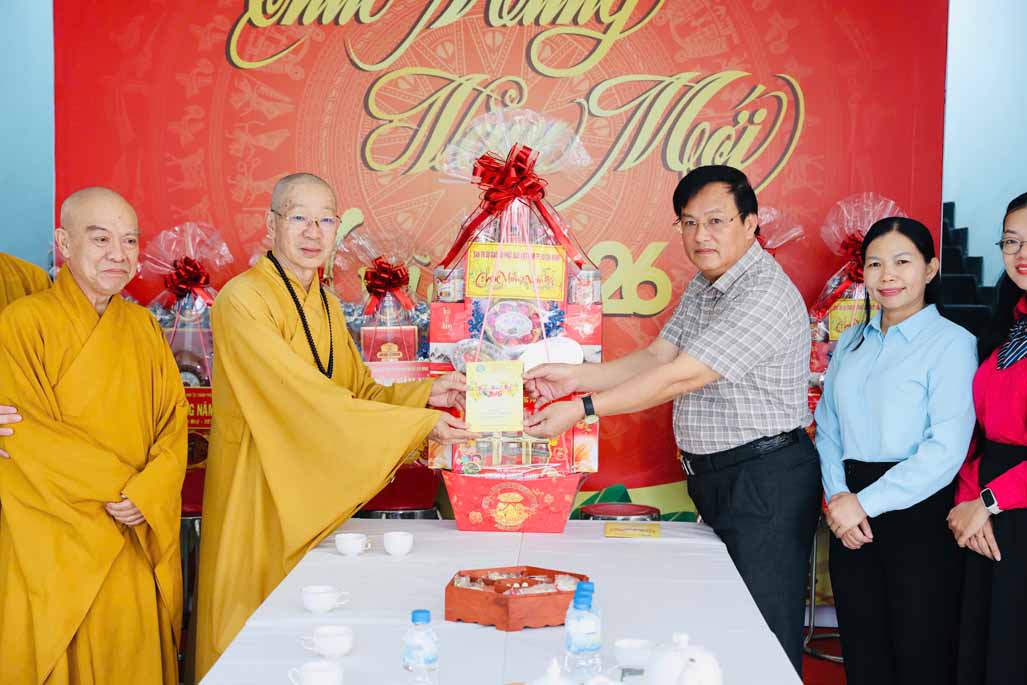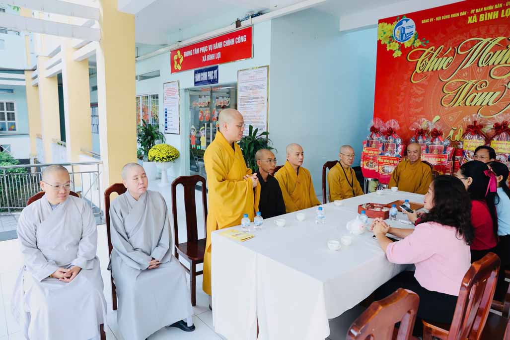 Hòa thượng Thích Nhật Hỷ đại diện đoàn, gửi lời chúc mừng năm mới đến lãnh đạo Đảng ủy, HĐND, UBND, UBMTTQVN xã. Hoà thượng mong muốn năm 2026, Đảng bộ và các cấp chính quyền xã, tiếp tục hỗ trợ các cơ sở tự viện trú xứ trên địa bàn. Qua đó, góp phần đồng hành cùng Phật giáo Thành phố nói chung và các cơ sở tự viện nói riêng trong nhiệm vụ Hoằng pháp lợi sinh theo Tôn chỉ của Giáo hội.