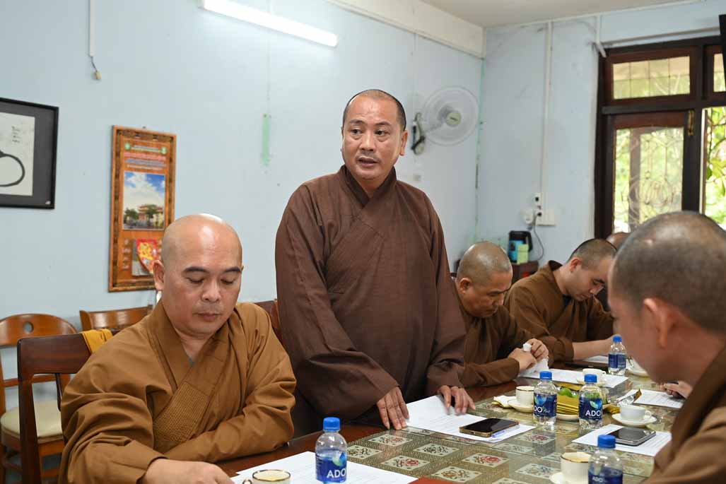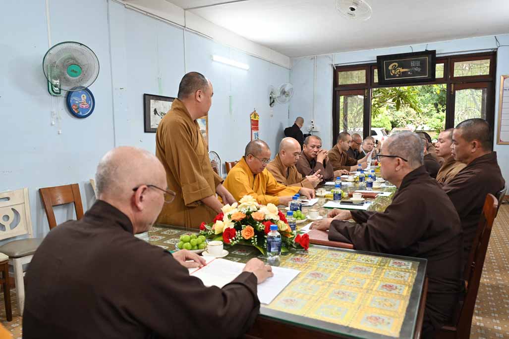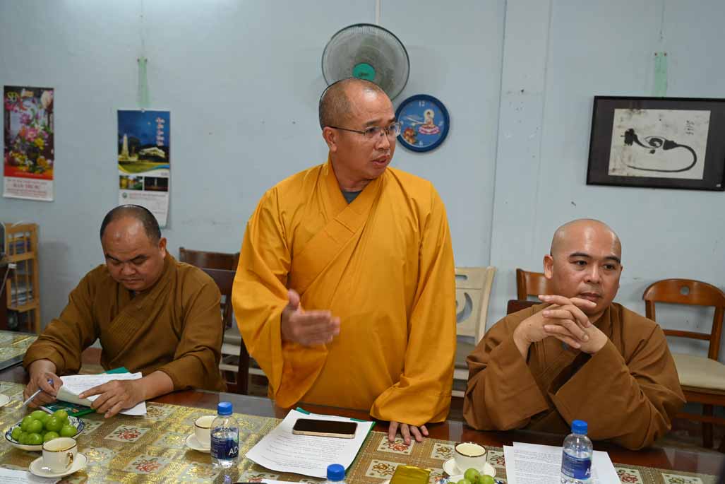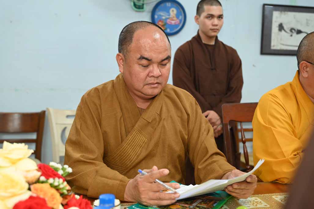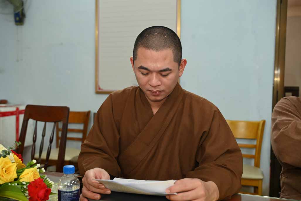 Tiếp đó, Thượng tọa Thích Nhuận Pháp, Phó ban kiêm Chánh Thư ký ban Trị sự GHPGVN tỉnh, đã trình bày chi tiết bản Dự thảo báo cáo công tác Phật sự đã thực hiện trong tháng vừa qua, nổi bật là các hoạt động từ thiện xã hội và công tác quản lý Tăng Ni, Tự viện.