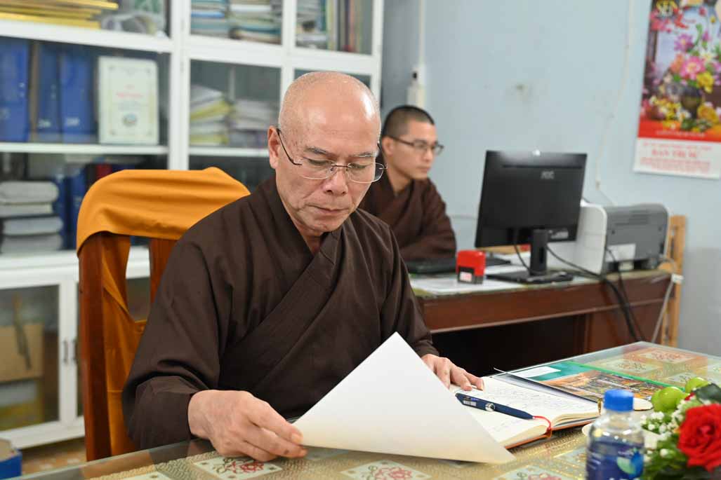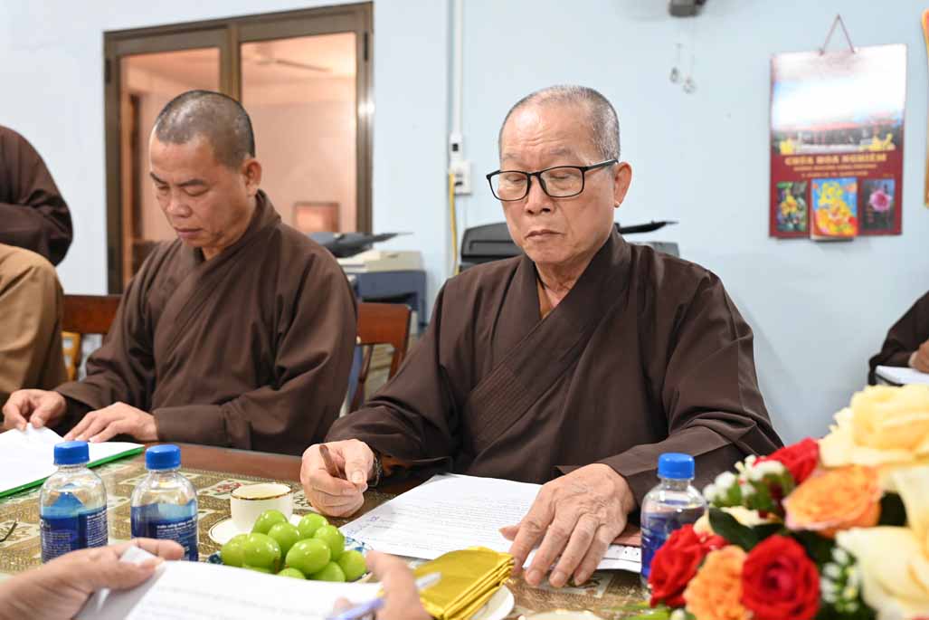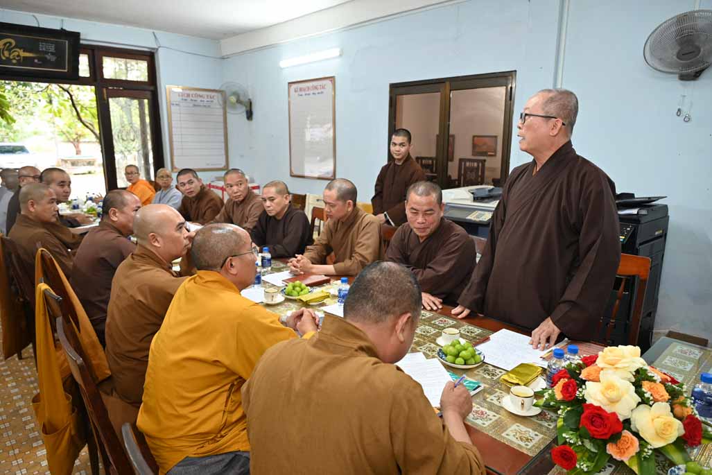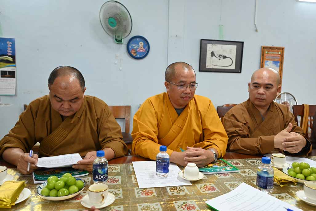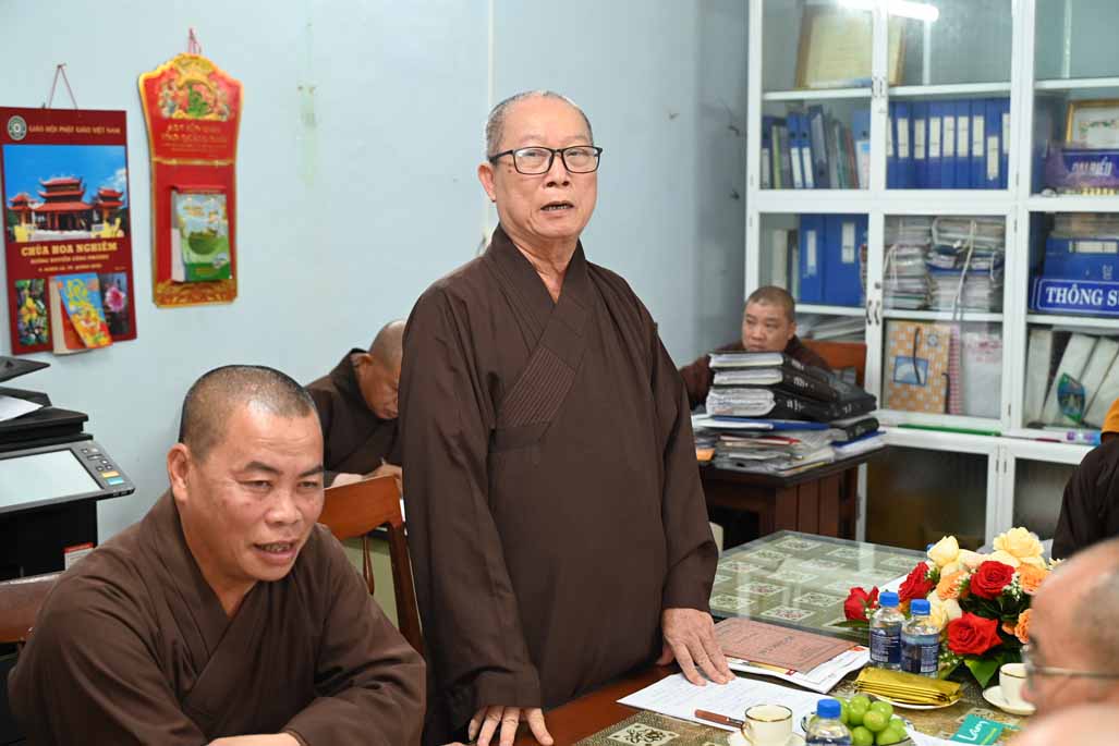 Tiếp đó, Thượng tọa Thích Nhuận Pháp, Phó ban kiêm Chánh Thư ký ban Trị sự GHPGVN tỉnh, đã trình bày chi tiết bản Dự thảo báo cáo công tác Phật sự đã thực hiện trong tháng vừa qua, nổi bật là các hoạt động từ thiện xã hội và công tác quản lý Tăng Ni, Tự viện.