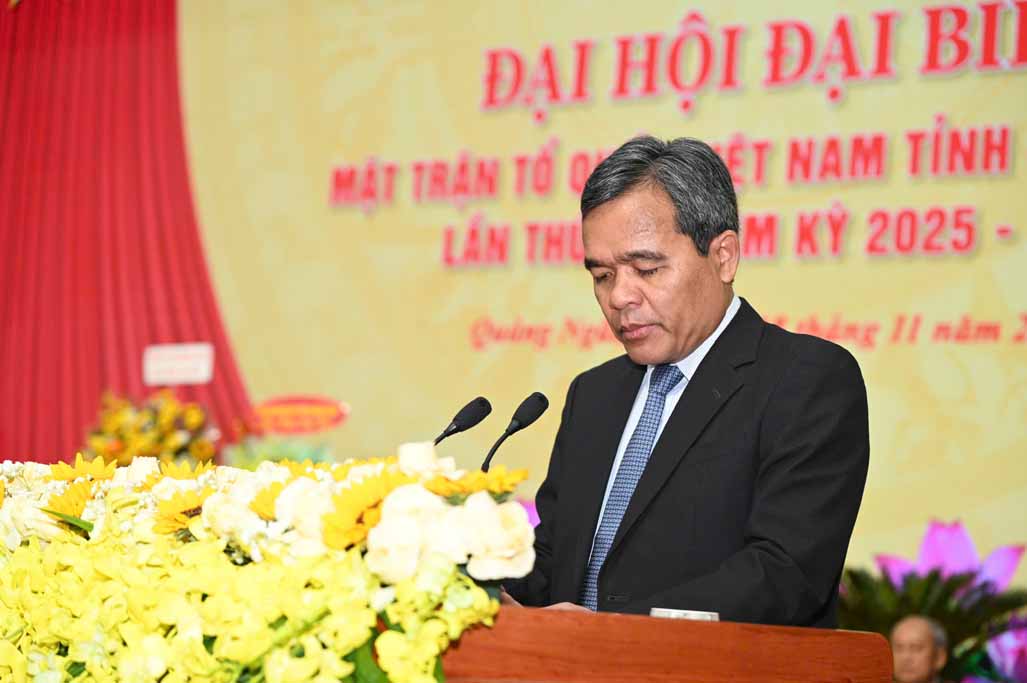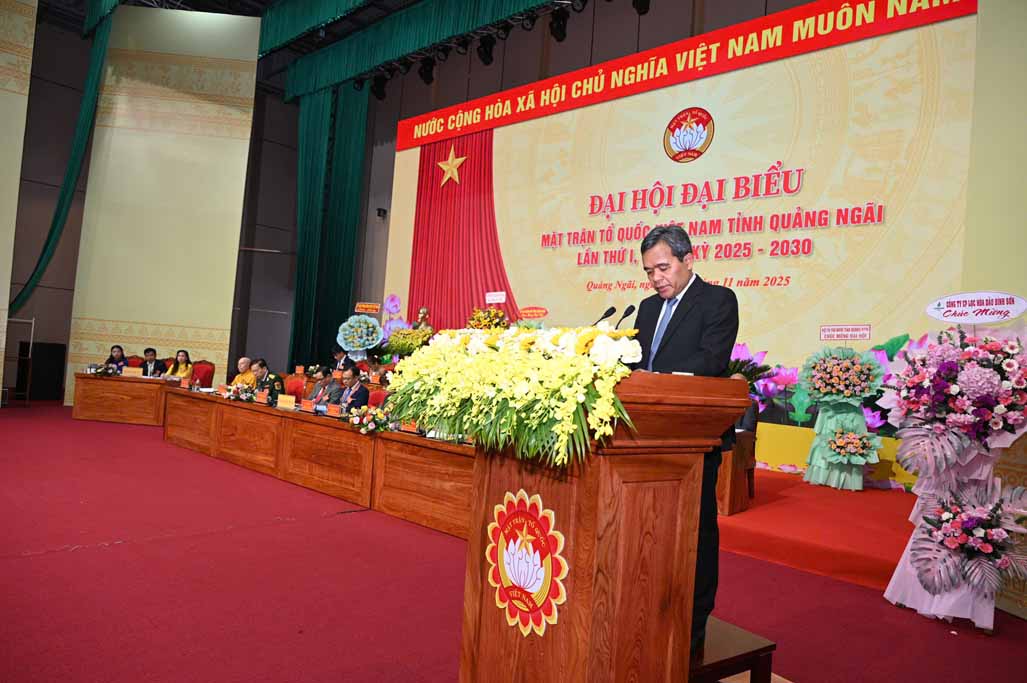 Bí thư Tỉnh ủy lưu ý, Mặt trận các cấp tiếp tục củng cố đoàn kết nội bộ, đoàn kết giữa các dân tộc, tôn giáo; giữ gìn bản sắc văn hóa; nâng cao hiệu quả đối ngoại nhân dân; kết nối cộng đồng người Quảng Ngãi trong và ngoài nước tham gia phát triển tỉnh nhà.