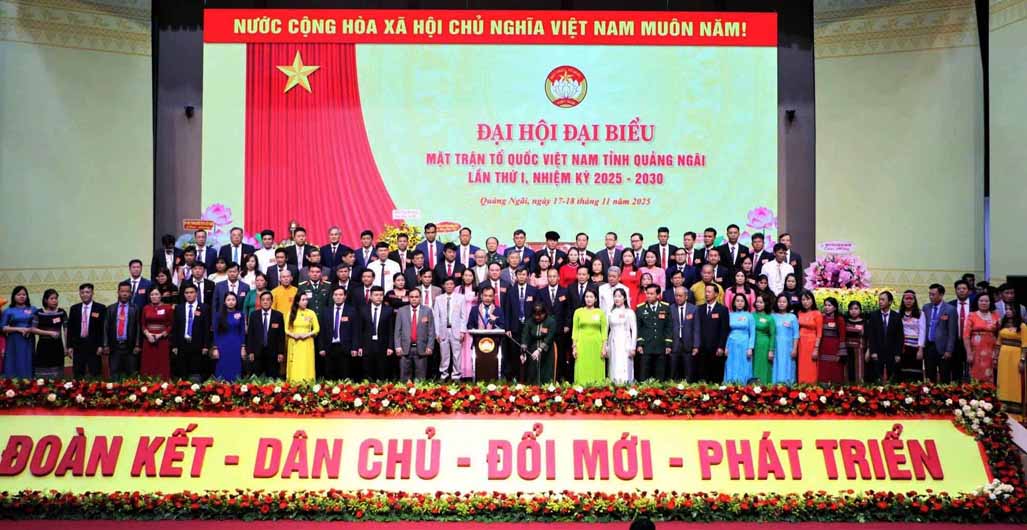 Sáng 18/11/2025, tại Trung tâm Hội nghị và Triển lãm tỉnh Quảng Ngãi. Đại hội Đại biểu Mặt trận Tổ quốc (MTTQ) Việt Nam tỉnh Quảng Ngãi lần thứ I, nhiệm kỳ 2025 – 2030 đã khai mạc trọng thể với chủ đề “Đoàn kết – Dân chủ – Đổi mới – Phát triển”.