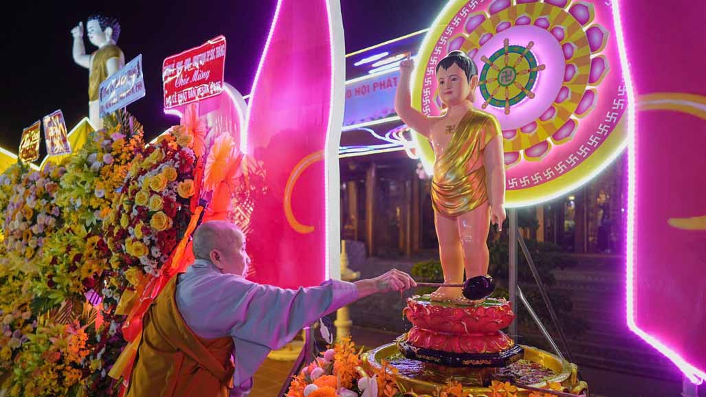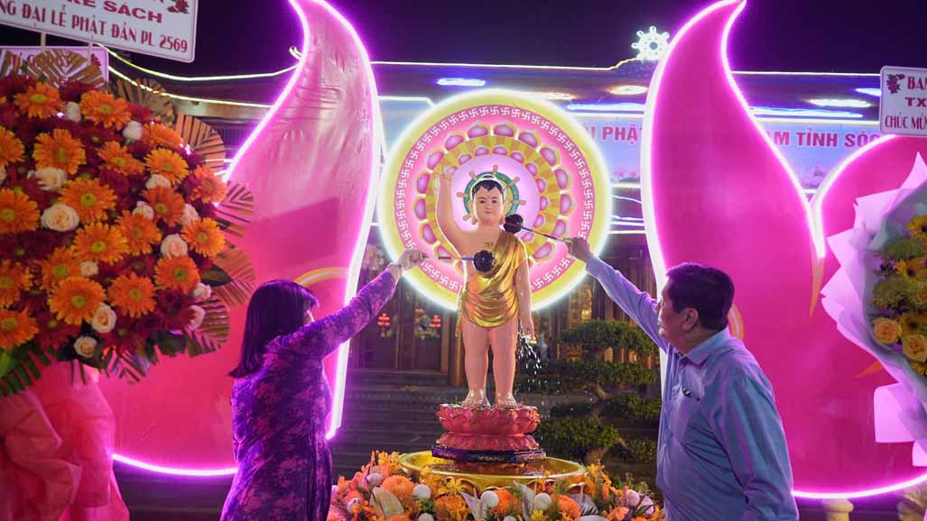 Đỉnh cao của Đại lễ là nghi thức kính mừng Phật Đản với ba hồi chuông trống bát nhã, một phút nhập từ bi quán, dâng hương cúng Phật và nghi thức Tắm Phật truyền thống. Buổi lễ kết thúc viên mãn trong niềm an lạc, nguyện cầu thế giới hòa bình, nhân dân an lạc, vạn sự hanh thông.