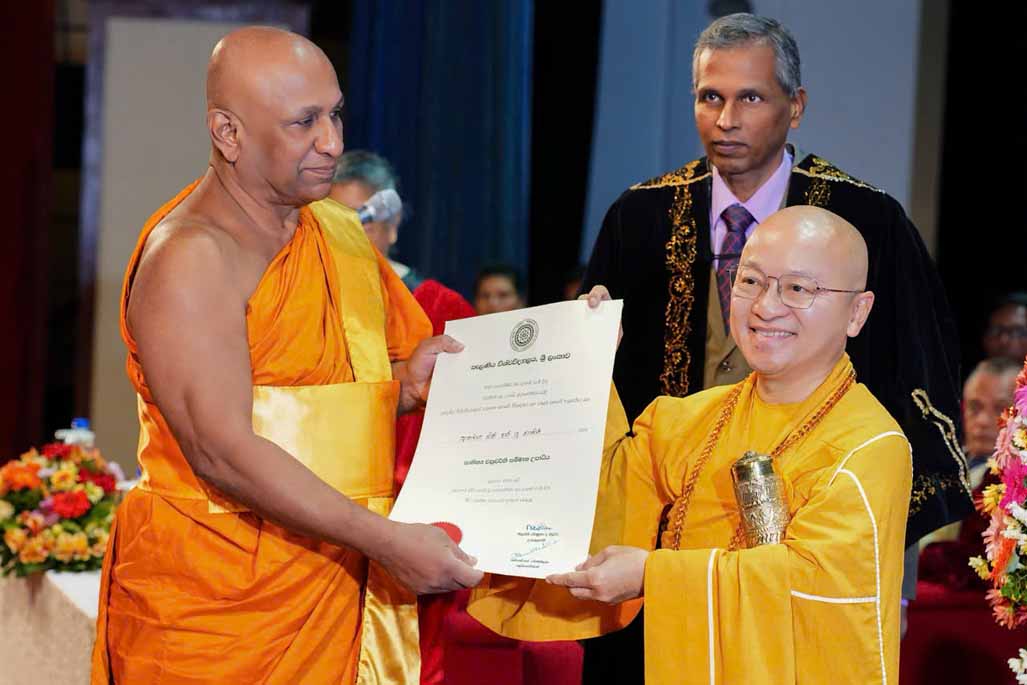 Nhà trường ghi nhận những đóng góp nổi bật của Thầy trong nghiên cứu Phật học, hoằng pháp quốc tế, cũng như vai trò cầu nối thúc đẩy giao lưu Phật giáo giữa Việt Nam và Sri Lanka trong nhiều năm qua.