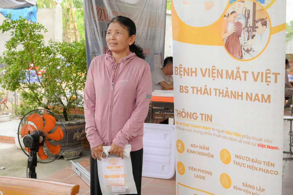 Cô Kim Phượng, sau khi được thăm, khám và tư vấn, rất vui mừng, phấn khởi, bày tỏ lòng biết ơn đối với Thầy trụ trì và các y, bác sĩ bệnh viện Mắt Việt đã tổ chức hoạt động ý nghĩa này.