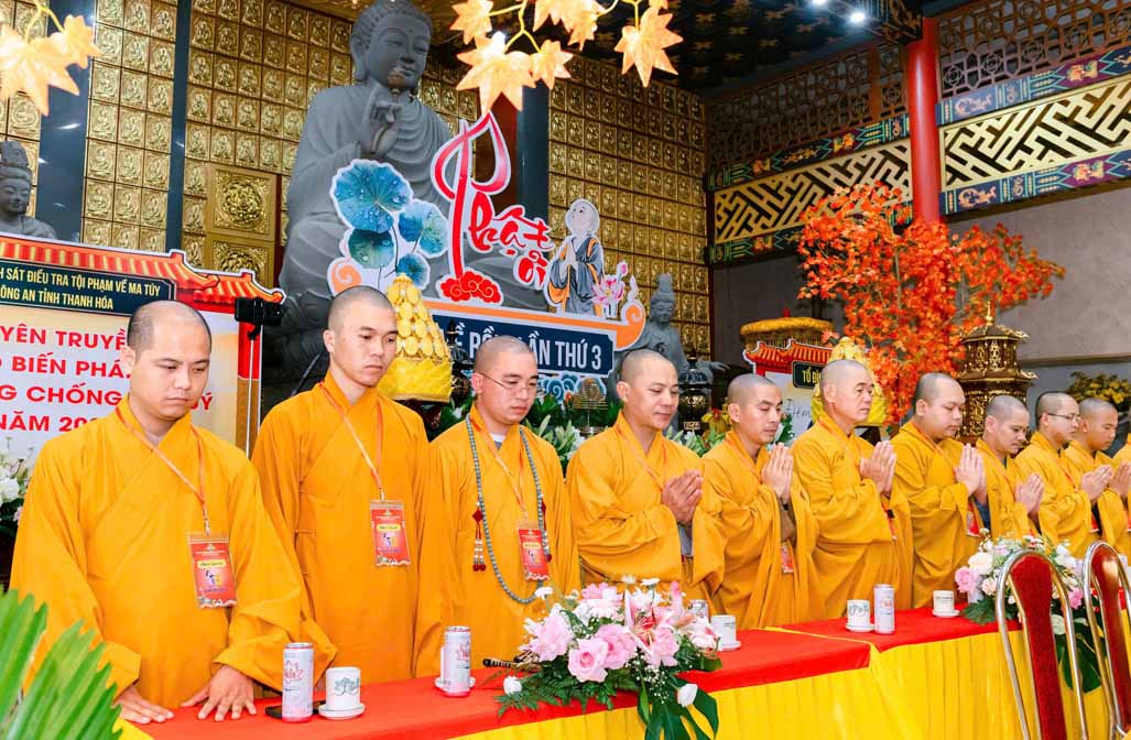 Tham dự và chứng minh có TT. Thích Tâm Đức – Ủy viên Thường trực HĐTS, Chứng minh BTS Phật giáo tỉnh, Chư tôn đức Tăng Ni BTS Phật giáo tỉnh, chư Tăng Ni trong tổ đình và hơn 350 khóa sinh và tình nguyện viên cùng tham dự.