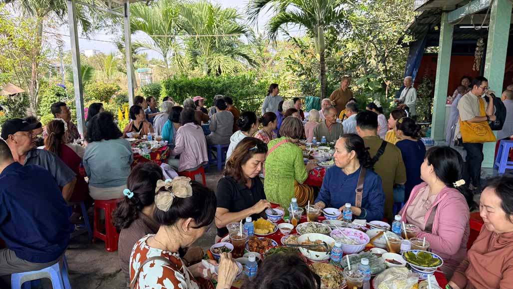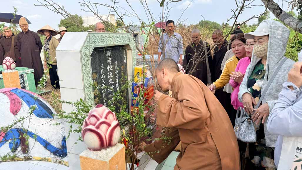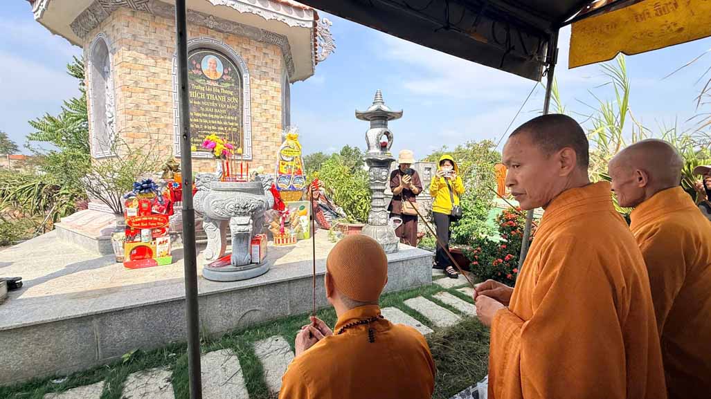 Tiếp nối chương trình, đoàn sẽ viếng mộ ông bà tổ tiên và tháp Hòa thượng Thích Thanh Sơn, trụ trì Tổ đình chùa Vạn Thọ được phụng thờ tại quê nhà đồng thời dùng cơm trưa thân mật tại tư gia Hòa thượng trong không khí ấm áp nghĩa tình.
