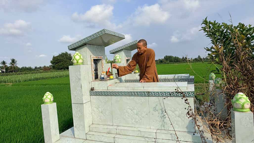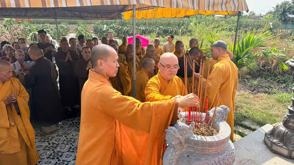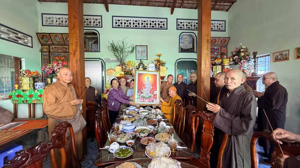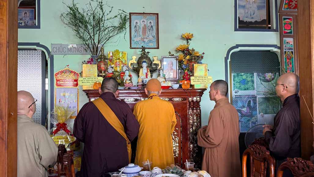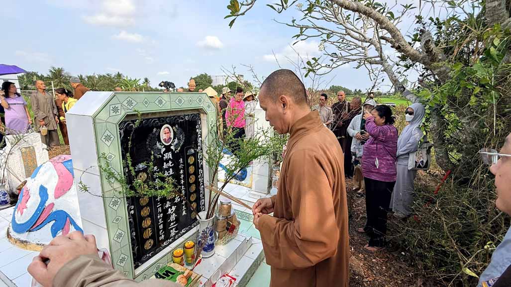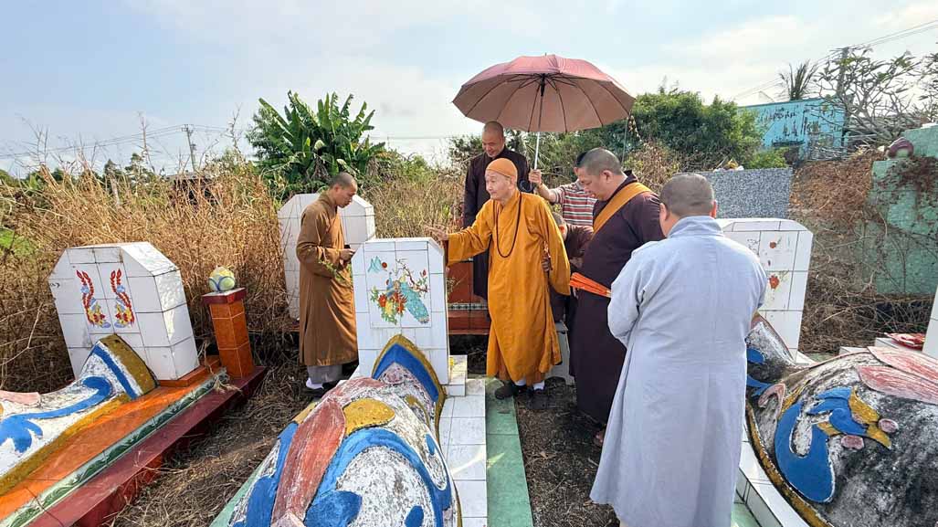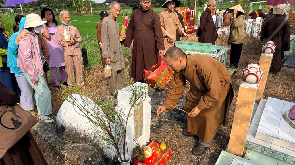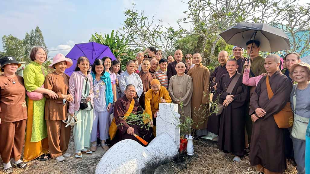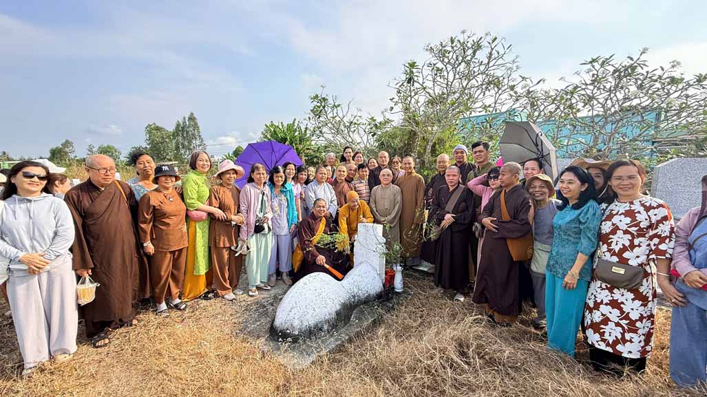 Tại xã Đồng Thạnh, huyện Gò Công Tây (cũ) nay là xã Đồng Sơn tỉnh Đồng Tháp dưới sự hướng dẫn của HT. Thích Thanh Hùng, Uỷ viên Thường trực HĐCM; Thượng toạ Thích Minh Quang – Uỷ viên BTS GHPGVN TP. HCM; Thượng toạ Thích Minh Hiếu cùng chư Tăng Tổ đình Chùa Vạn Thọ, chư Tăng Tổ đình Phổ Quang( P. Phú Nhuận, TP. HCM). Theo kế hoạch, đoàn sẽ khởi hành từ Tổ đình về quê nhà Hòa thượng Tôn Sư để thăm viếng mộ bà mẫu, bày tỏ lòng hiếu kính và tưởng niệm thâm ân sinh thành.
