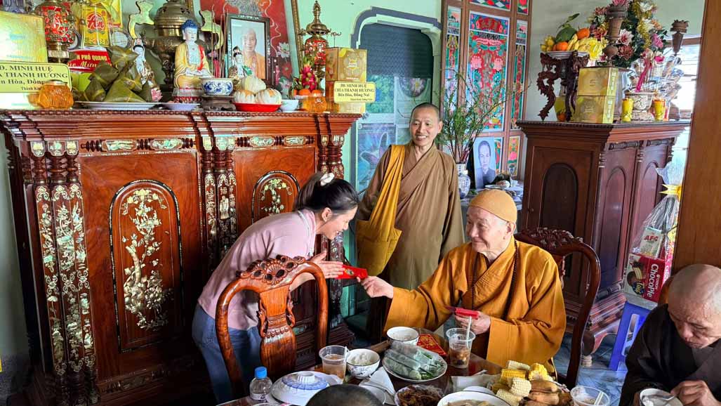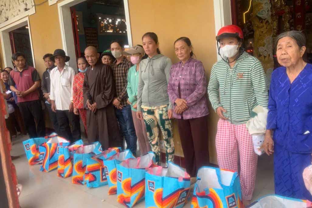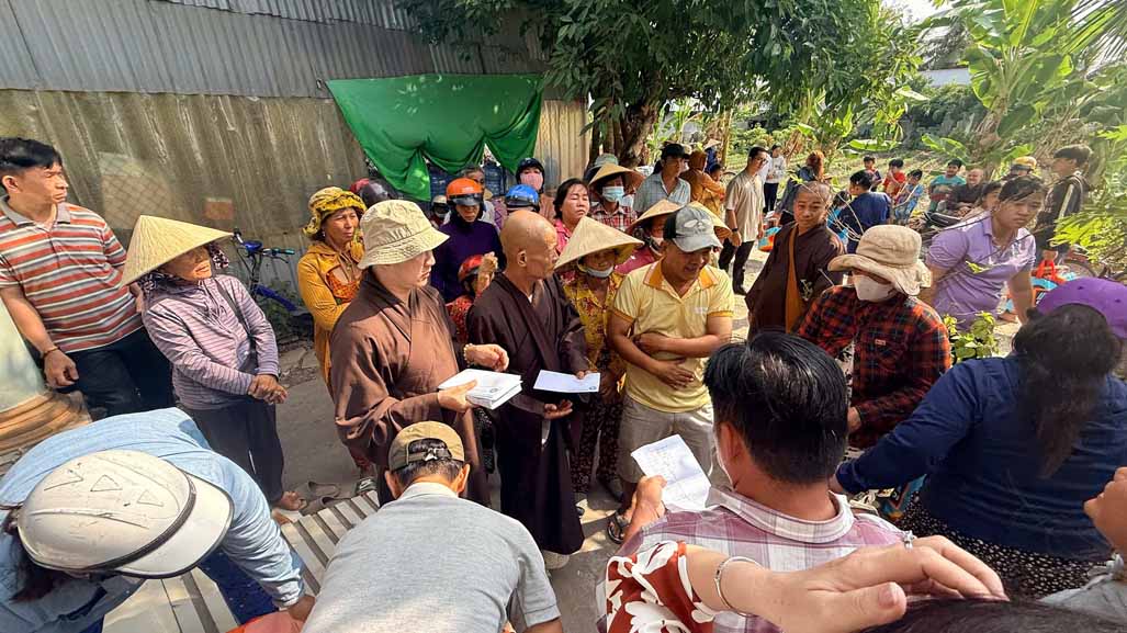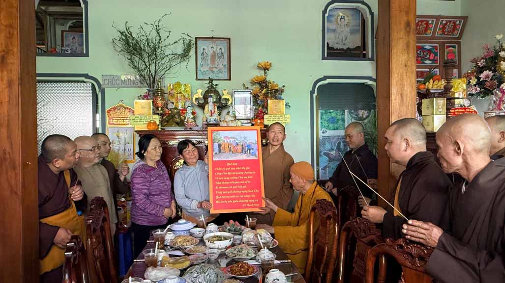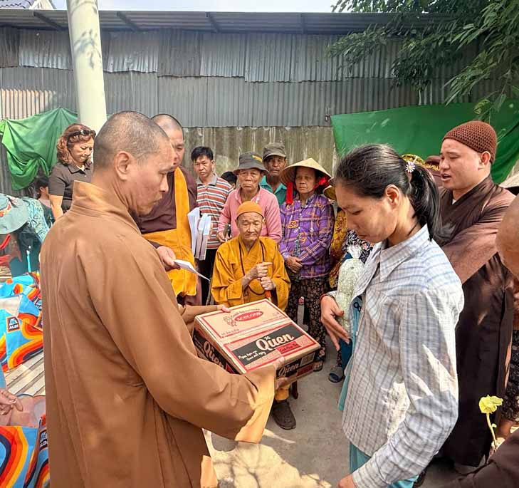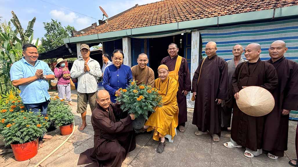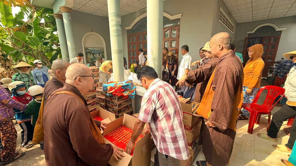 Vào cùng ngày, đoàn quang lâm chùa Kim Thiền, xã Tân Thới, tỉnh Đồng Tháp, tổ chức phát 250 phần quà Tết đến các hộ gia đình có hoàn cảnh khó khăn, thể hiện tinh thần từ bi cứu khổ và đồng hành cùng bà con trong những ngày giáp Tết cổ truyền.