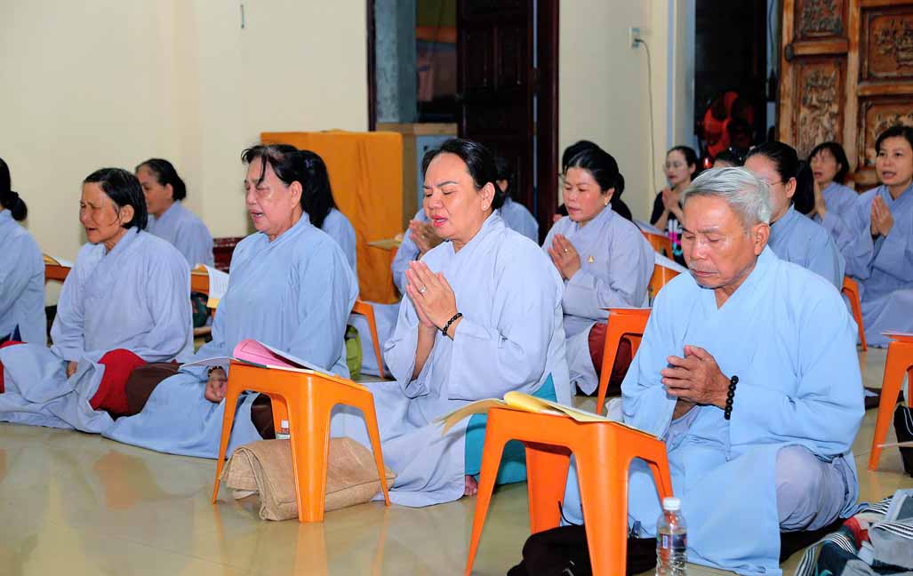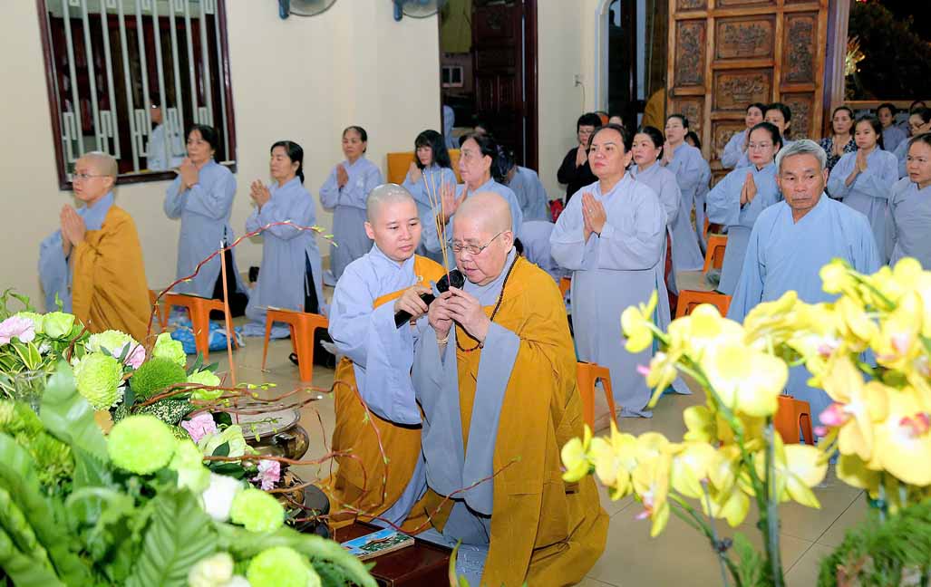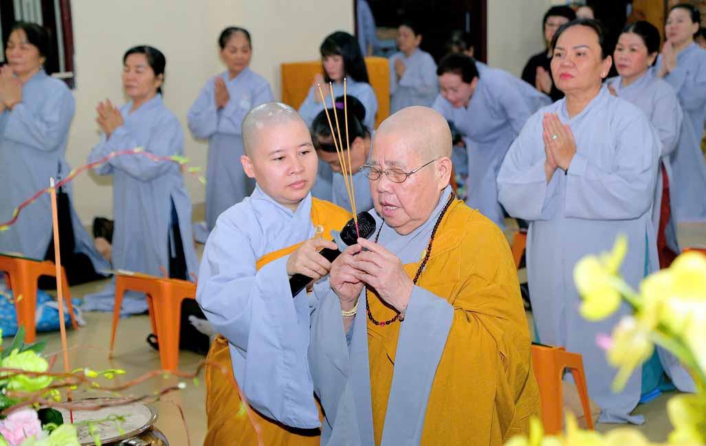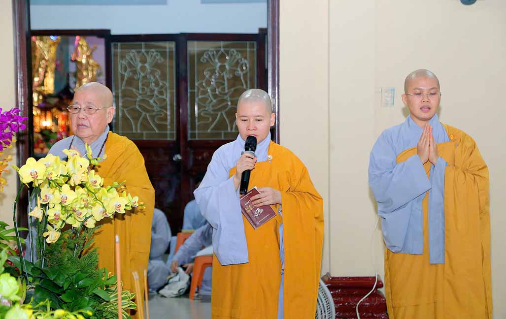 Buổi lễ dưới sự gia trì và hướng nguyện của Ni trưởng Thích Từ Nhẫn – Phó trưởng PBNG Trung ương, trụ trì chùa Phước Viên, chư Tôn đức Ni tại bổn tự, cùng sự đồng tâm bái hướng của đông đảo Phật tử gần xa.