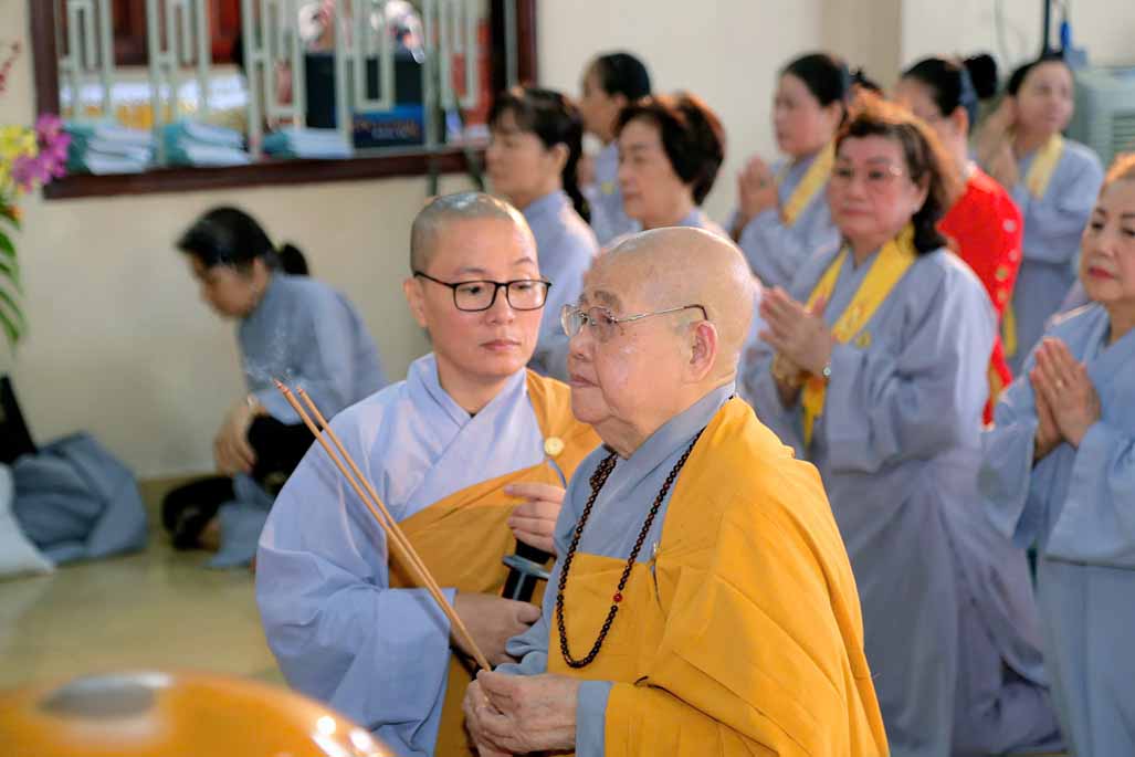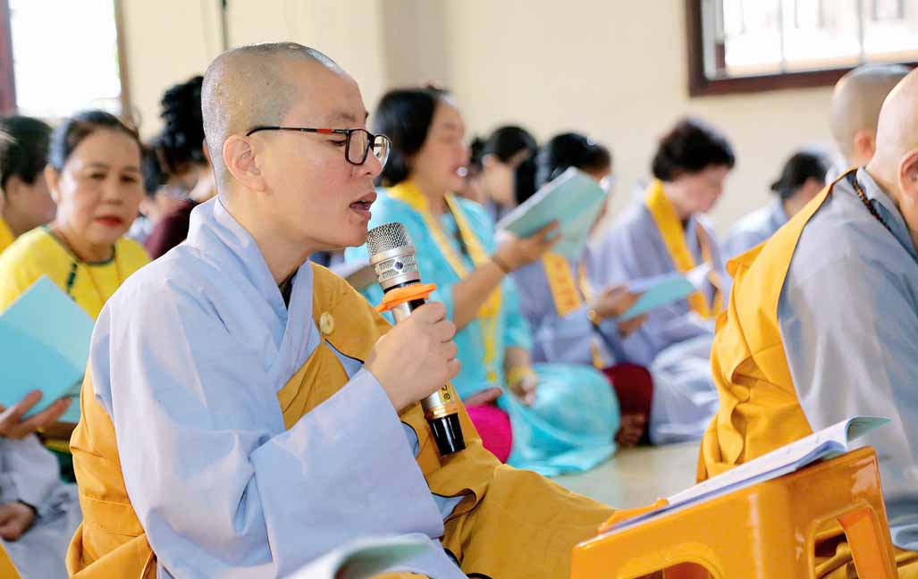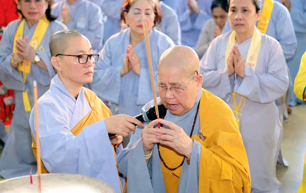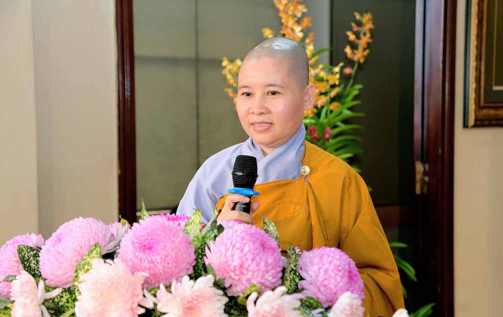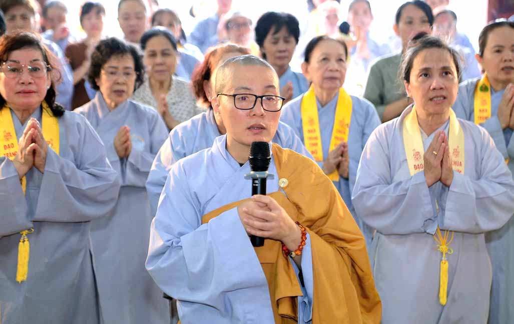 Đạo từ tại buổi lễ, Ni trưởng trụ trì tán thán quý Phật tử trong thời gian qua đã chuyên tâm tu học và hôm nay là Đại lễ Phật đản Liên hợp Quốc, xem đây là ngày lễ trọng đại của Thế giới, từ đó quý Phật tử cố gắng tinh tấn tu tập, nghiêm trì giới luật đã thọ, để xứng đáng là con hiền của đức Từ phụ.