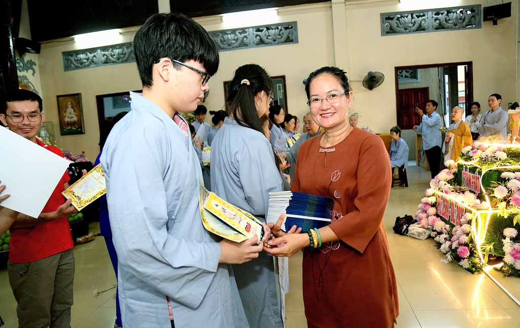 Chiều cùng ngày có hơn 30 Phật tử đã đến Quy y Tam bảo tại chùa. Ni Trưởng trụ trì đã truyền trao 5 giới nhà Phật cho quý Phật tử. Quy y tam bảo giúp chúng ta quay về và nương tựa vào Tam Bảo, tìm kiếm sự bảo vệ từ Tam Bảo. Ni Trưởng mong rằng sao khi quy y quý Phật tử cố gắn giữ gìn 5 giới nhà Phật và chúc quý Phật tử có nhiều sức khỏe và may mắn sau khi trở thành người con Phật.