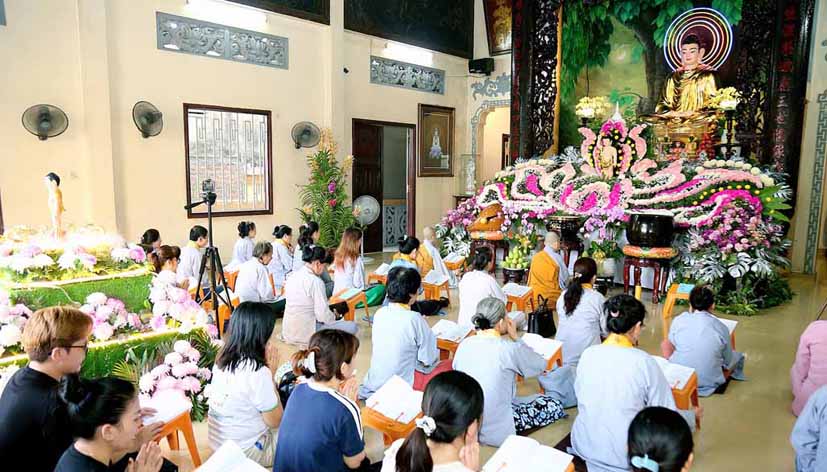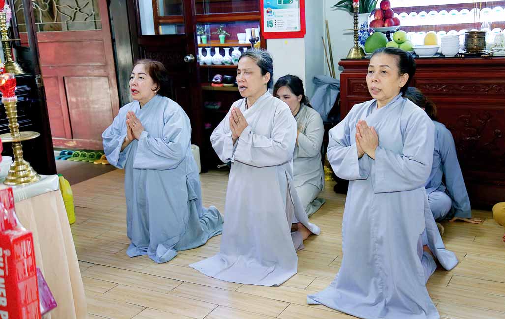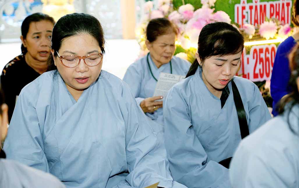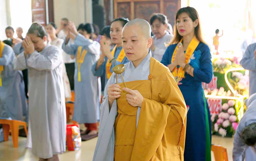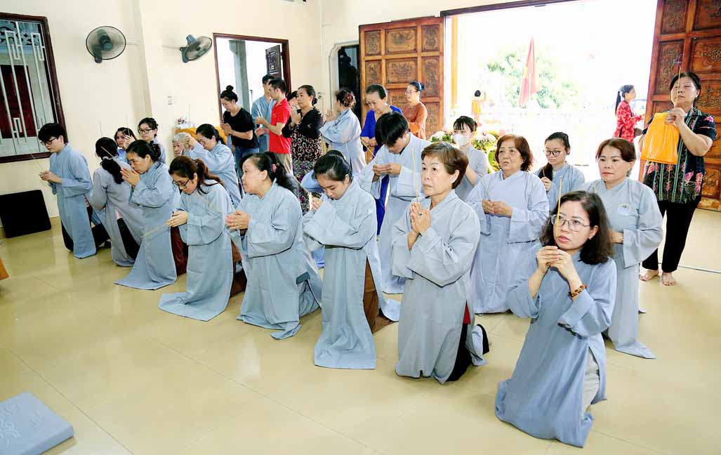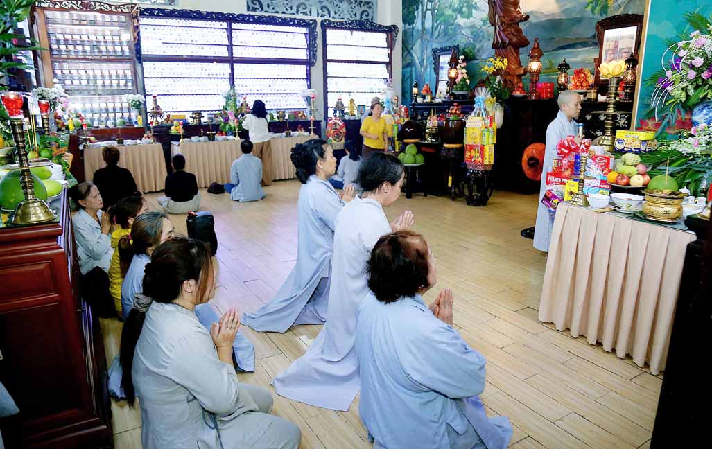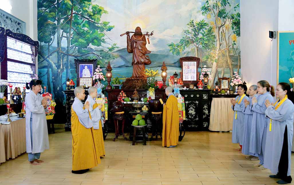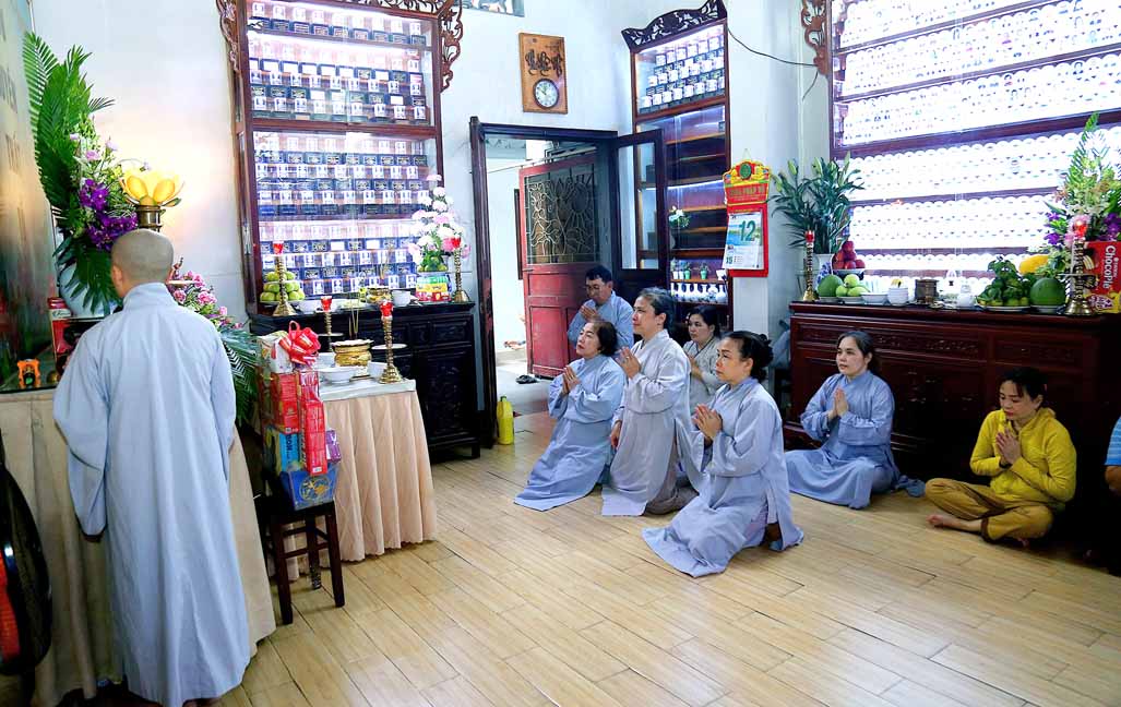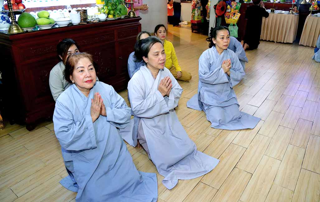 Tại đây Phật tử được quý Sư cô tại chùa hướng dẫn niêm hương bạch Phật, đảnh lễ Tam Bảo, cầu mong chư Phật gia hộ cho quý Phật tử thân tâm an lạc, gặp những điều may mắn trong cuộc sống.