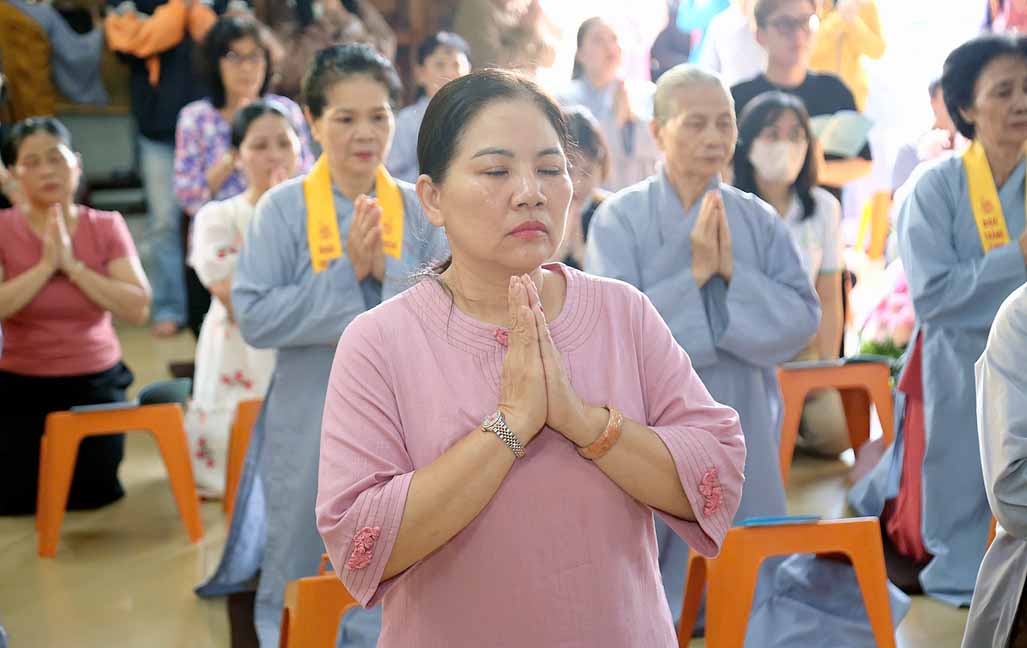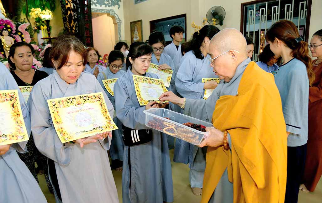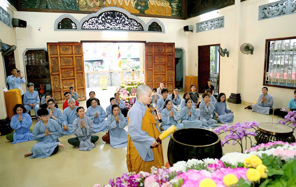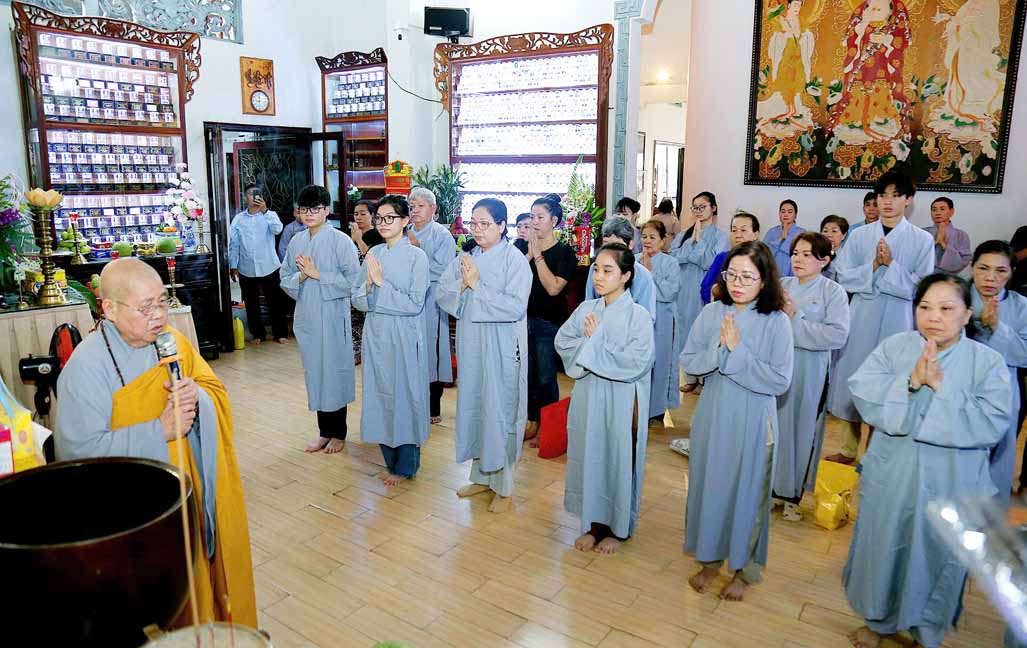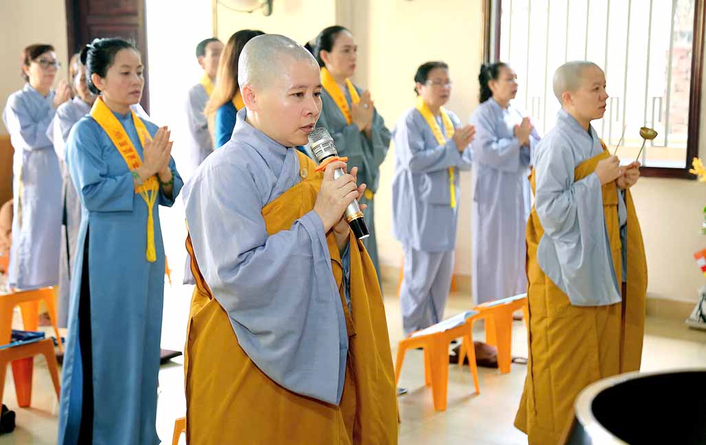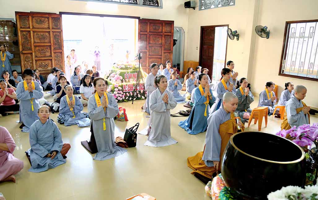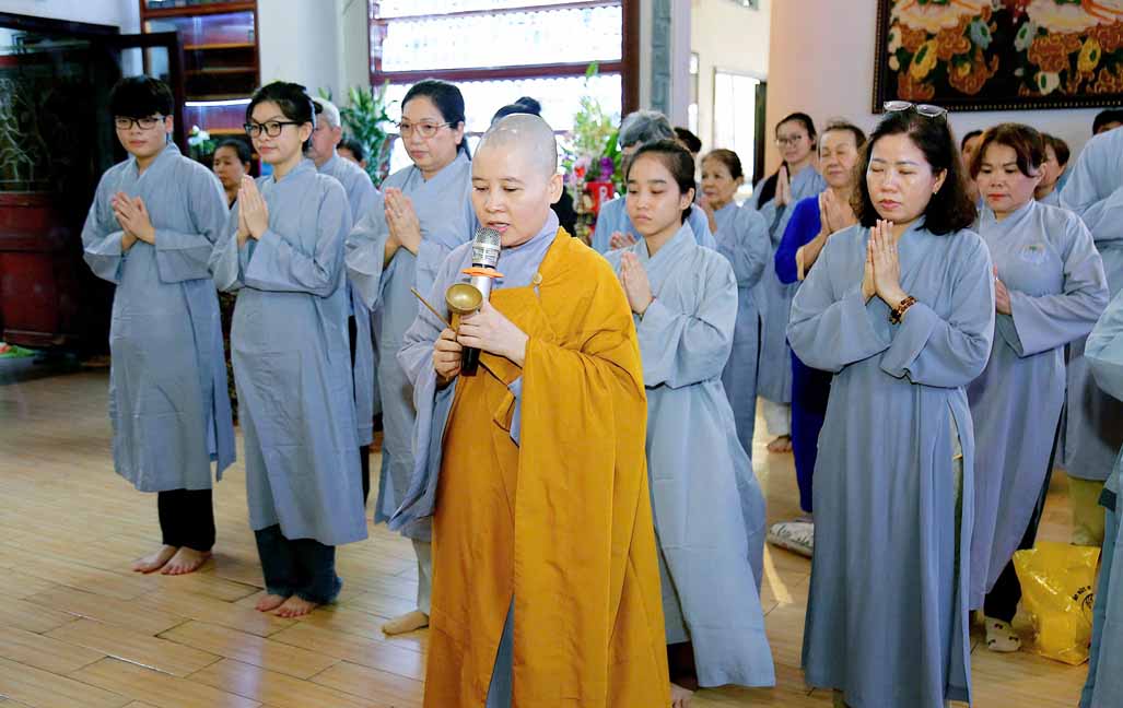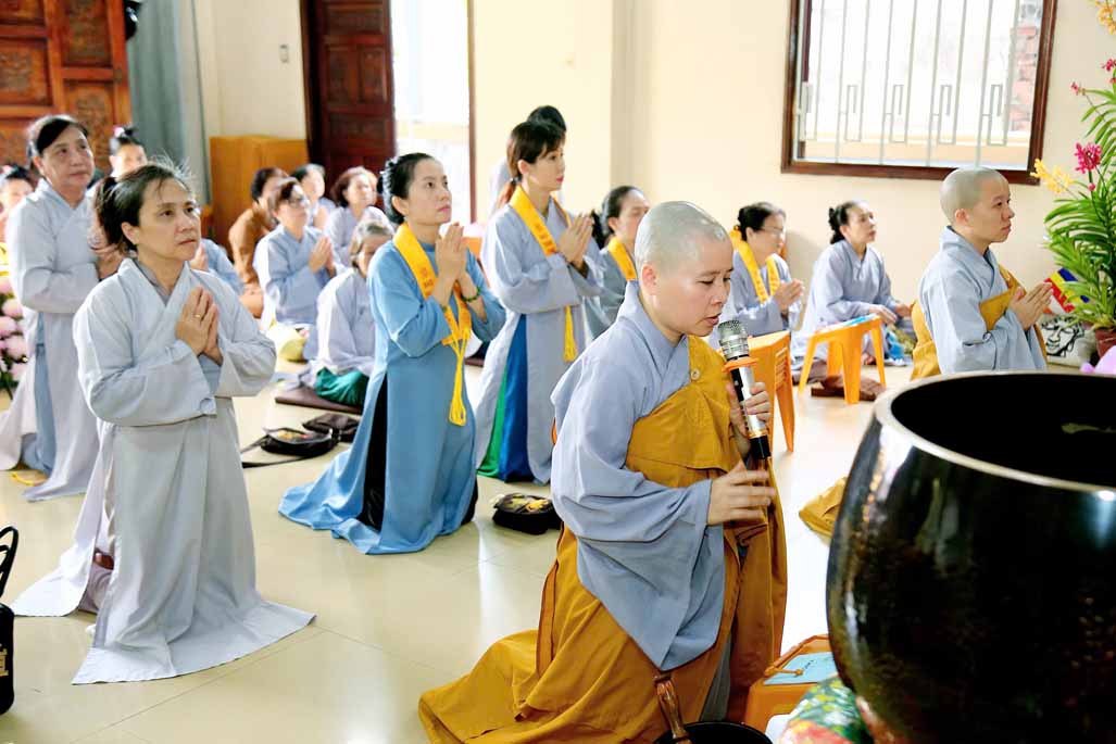 Chiều cùng ngày có hơn 30 Phật tử đã đến Quy y Tam bảo tại chùa. Ni Trưởng trụ trì đã truyền trao 5 giới nhà Phật cho quý Phật tử. Quy y tam bảo giúp chúng ta quay về và nương tựa vào Tam Bảo, tìm kiếm sự bảo vệ từ Tam Bảo. Ni Trưởng mong rằng sao khi quy y quý Phật tử cố gắn giữ gìn 5 giới nhà Phật và chúc quý Phật tử có nhiều sức khỏe và may mắn sau khi trở thành người con Phật.