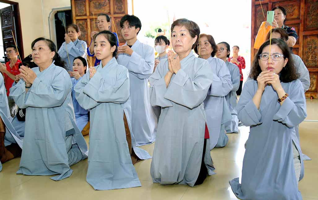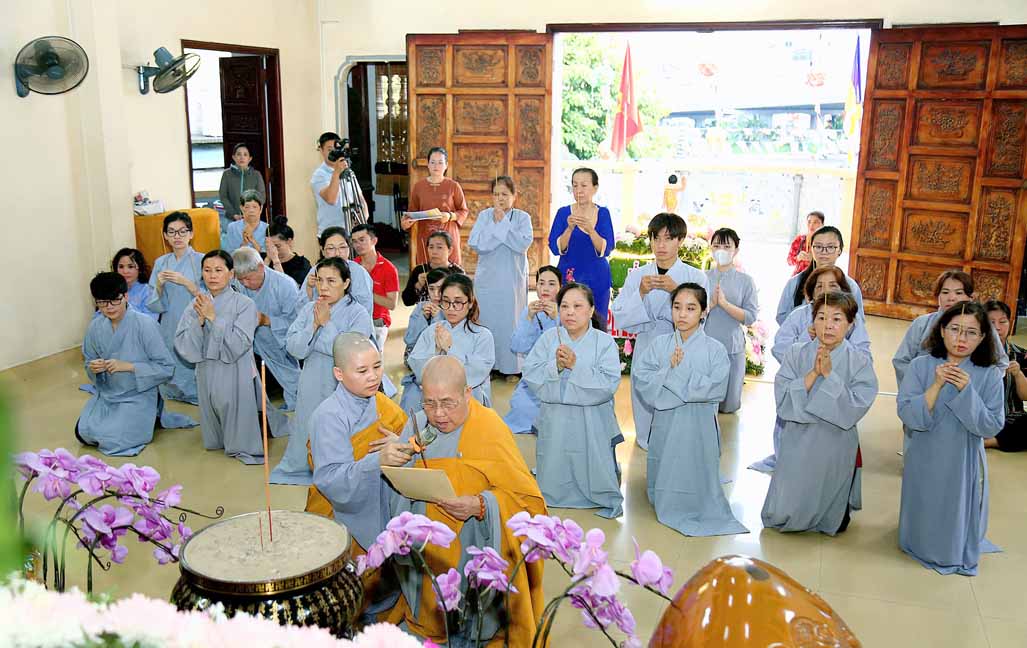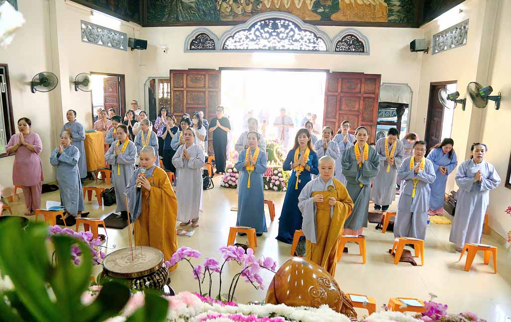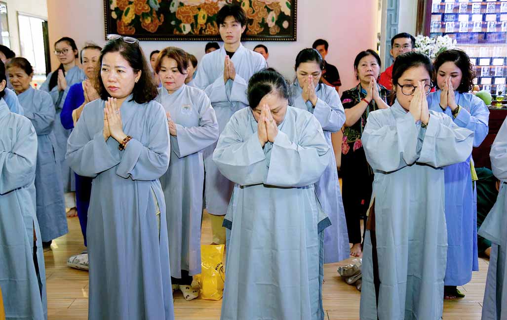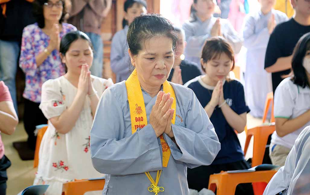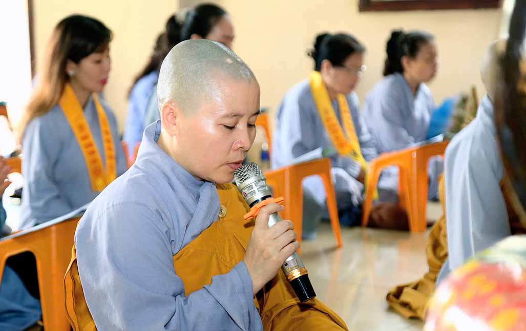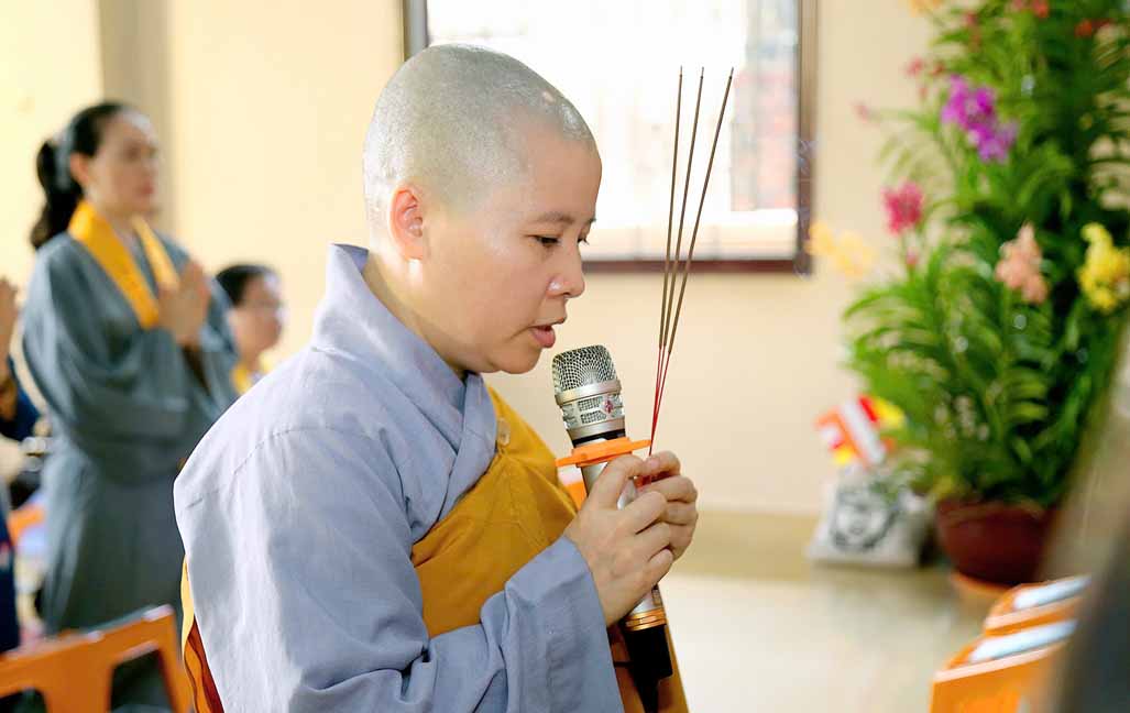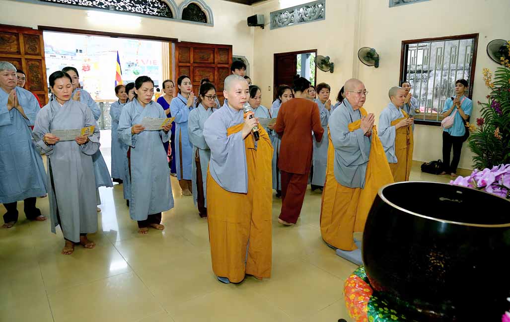 Chiều cùng ngày có hơn 30 Phật tử đã đến Quy y Tam bảo tại chùa. Ni Trưởng trụ trì đã truyền trao 5 giới nhà Phật cho quý Phật tử. Quy y tam bảo giúp chúng ta quay về và nương tựa vào Tam Bảo, tìm kiếm sự bảo vệ từ Tam Bảo. Ni Trưởng mong rằng sao khi quy y quý Phật tử cố gắn giữ gìn 5 giới nhà Phật và chúc quý Phật tử có nhiều sức khỏe và may mắn sau khi trở thành người con Phật.