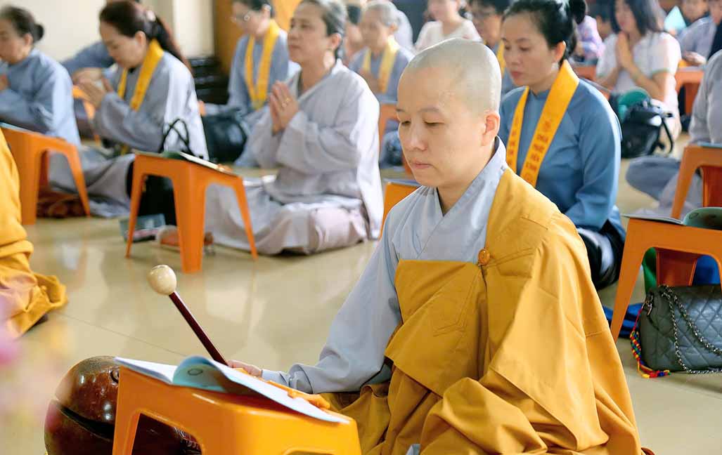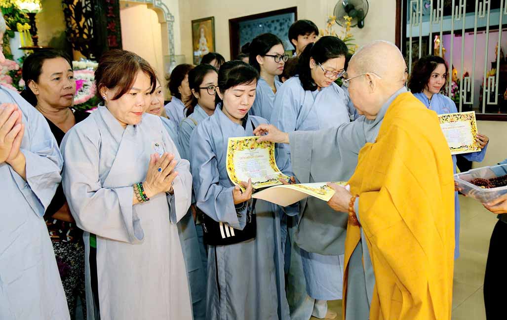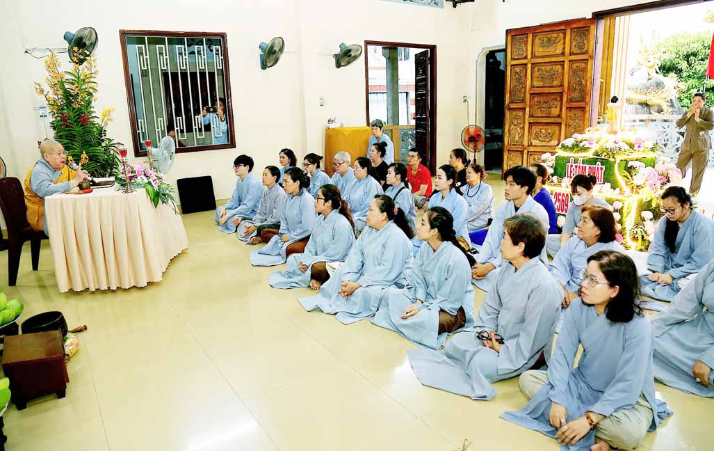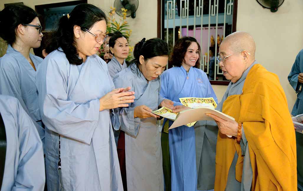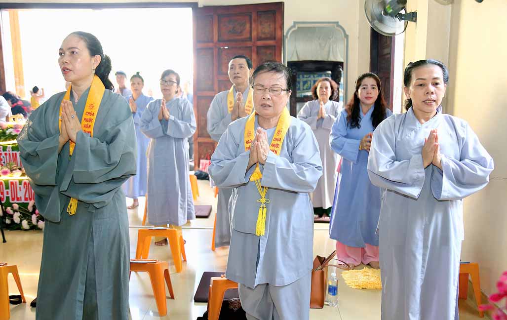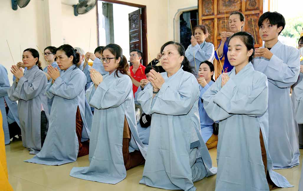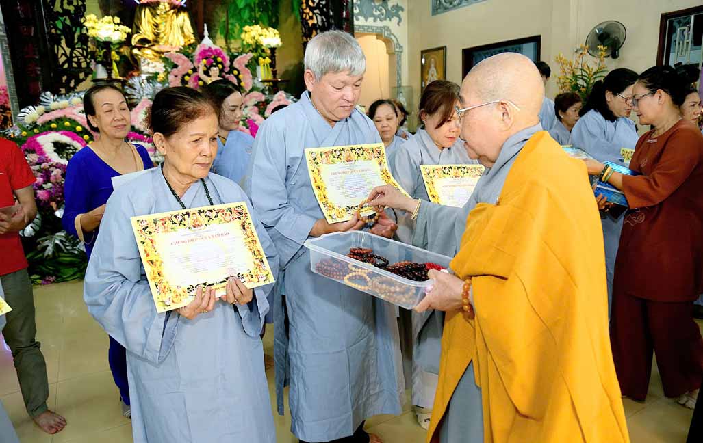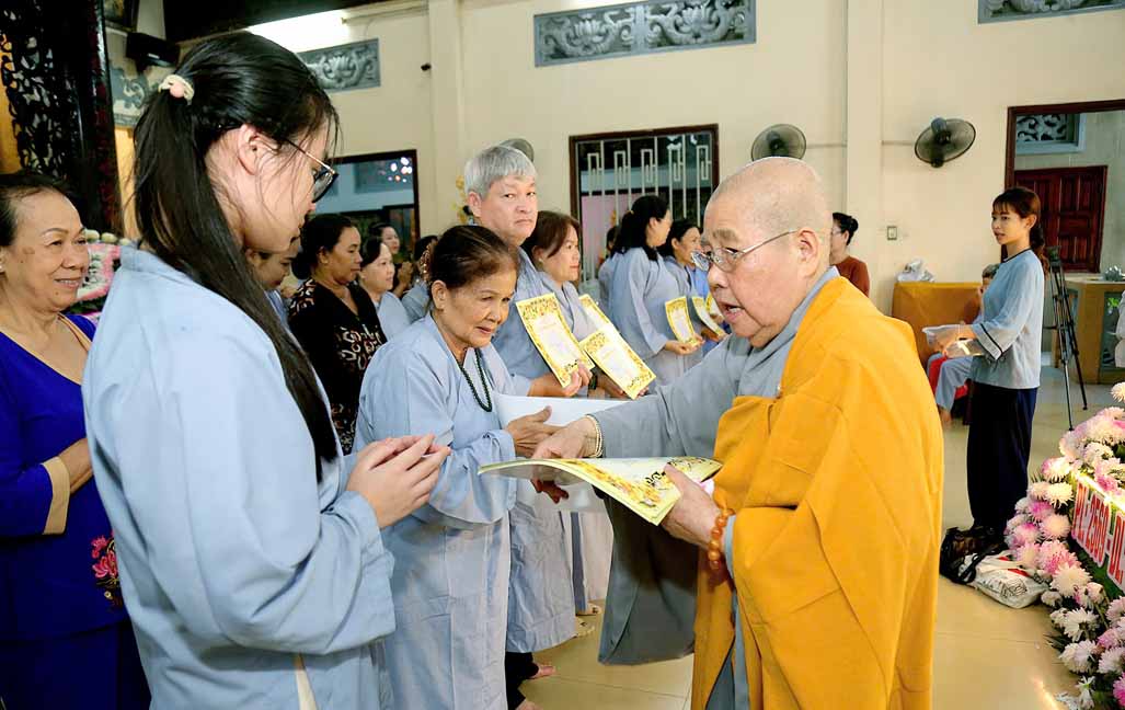 Chiều cùng ngày có hơn 30 Phật tử đã đến Quy y Tam bảo tại chùa. Ni Trưởng trụ trì đã truyền trao 5 giới nhà Phật cho quý Phật tử. Quy y tam bảo giúp chúng ta quay về và nương tựa vào Tam Bảo, tìm kiếm sự bảo vệ từ Tam Bảo. Ni Trưởng mong rằng sao khi quy y quý Phật tử cố gắn giữ gìn 5 giới nhà Phật và chúc quý Phật tử có nhiều sức khỏe và may mắn sau khi trở thành người con Phật.