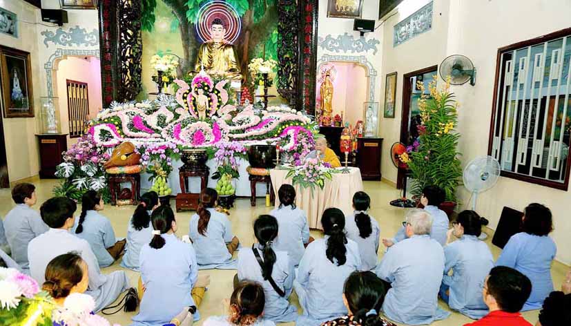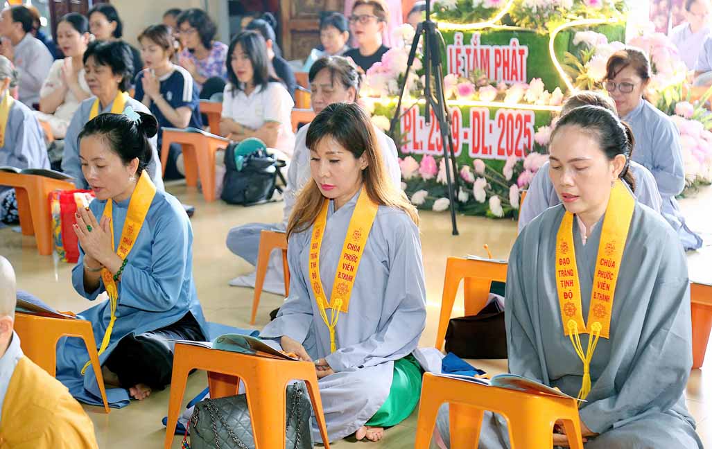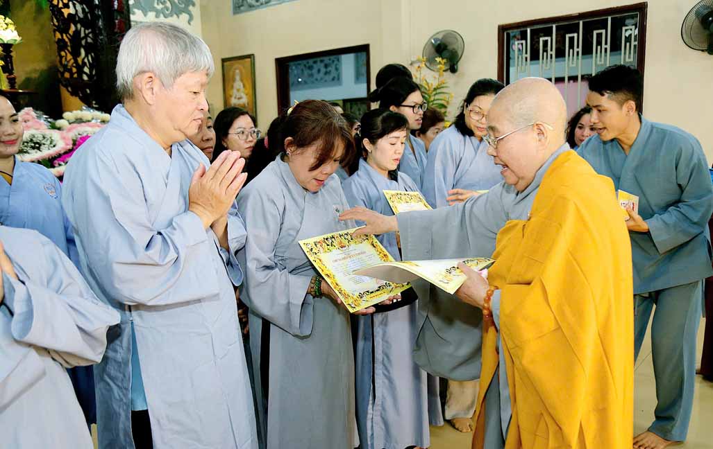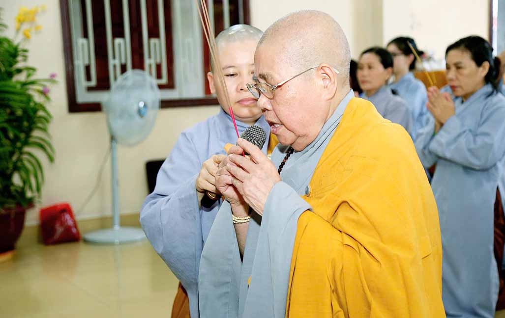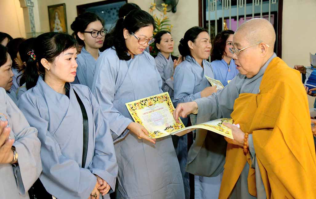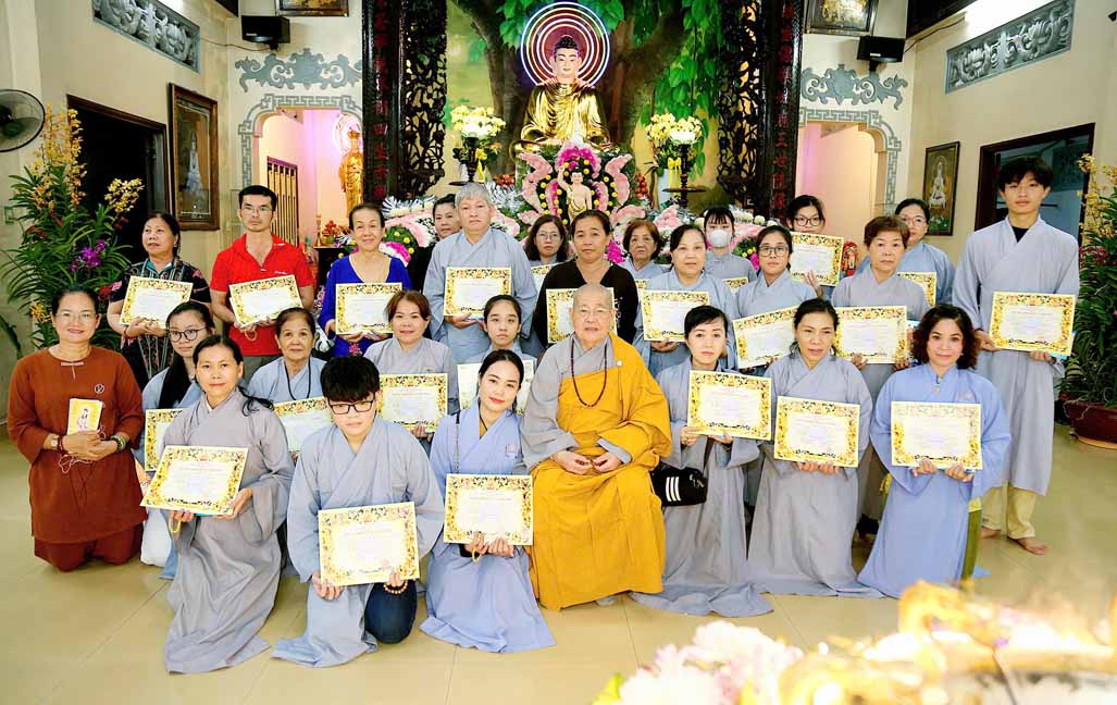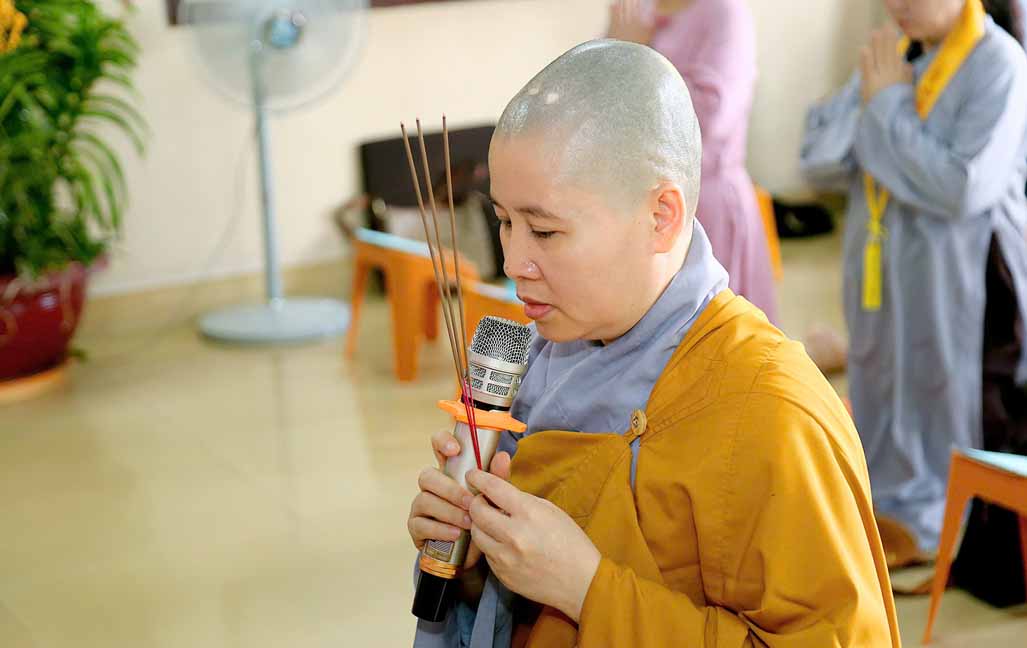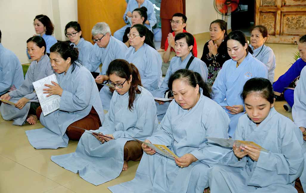 Chiều cùng ngày có hơn 30 Phật tử đã đến Quy y Tam bảo tại chùa. Ni Trưởng trụ trì đã truyền trao 5 giới nhà Phật cho quý Phật tử. Quy y tam bảo giúp chúng ta quay về và nương tựa vào Tam Bảo, tìm kiếm sự bảo vệ từ Tam Bảo. Ni Trưởng mong rằng sao khi quy y quý Phật tử cố gắn giữ gìn 5 giới nhà Phật và chúc quý Phật tử có nhiều sức khỏe và may mắn sau khi trở thành người con Phật.