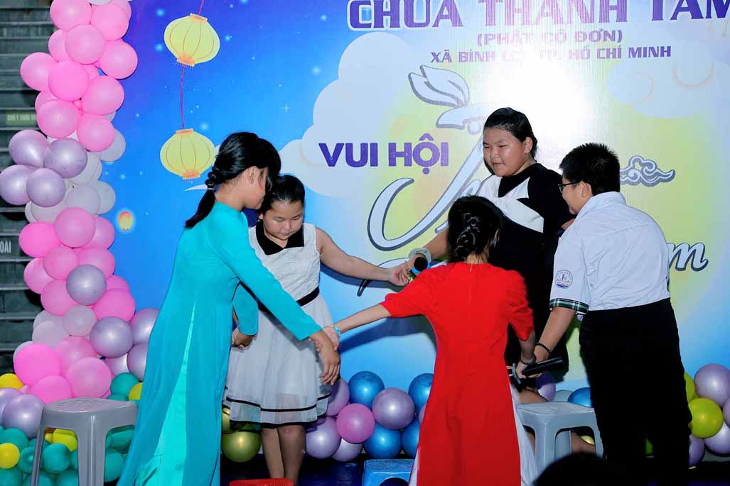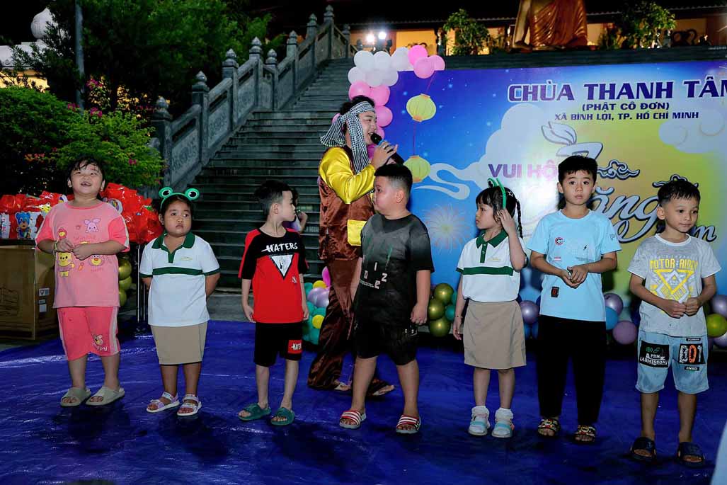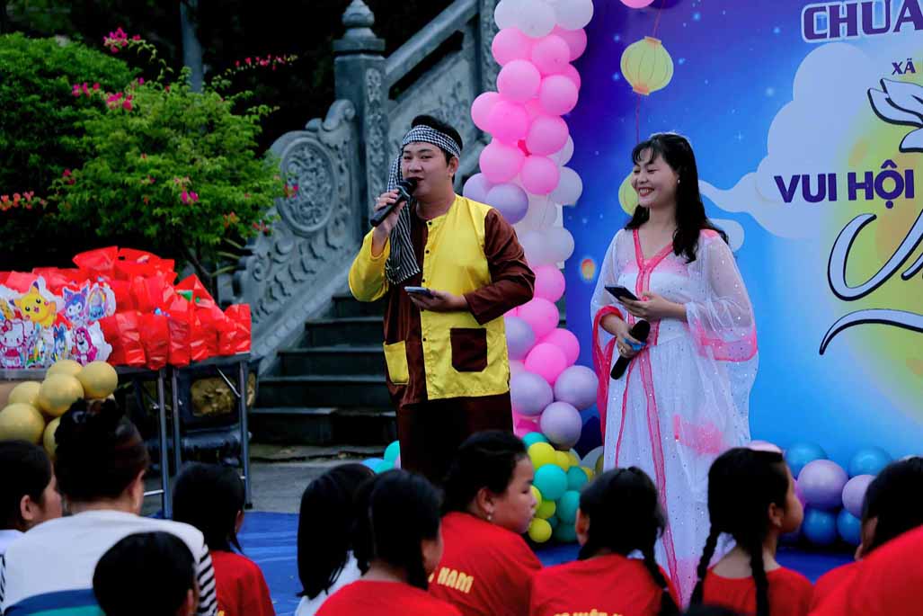 Các em đến nhận quà còn được tham gia vui chơi, ca múa hát, các trò chơi dân gian, đố vui, giao lưu cùng chú Cuội, một buổi vui chơi đầy náo nhiệt, mang lại sự thích thú cho các em khi ngày hội Trung thu đang về.