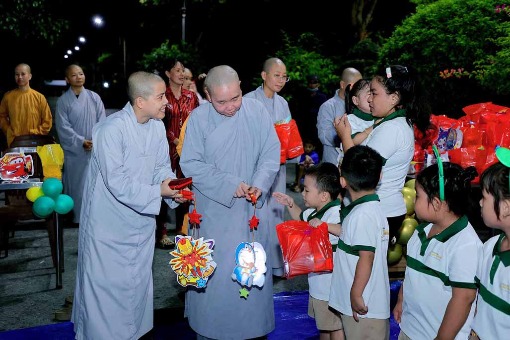 Hòa trong không khí ngày hội Trung thu (Tết thiếu nhi) trên mọi miền đất nước. Chư Tôn đức Ni trú xứ tại chùa Thanh Tâm (Phật Cô Đơn), xã Bình Lợi, TP. HCM, tổ chức sân chơi và tặng quà Trung thu cho các em thiếu nhi, học sinh lân cận vào chiều ngày 04/ 10/ 2025 (13/ 8/ năm Ất Tỵ).