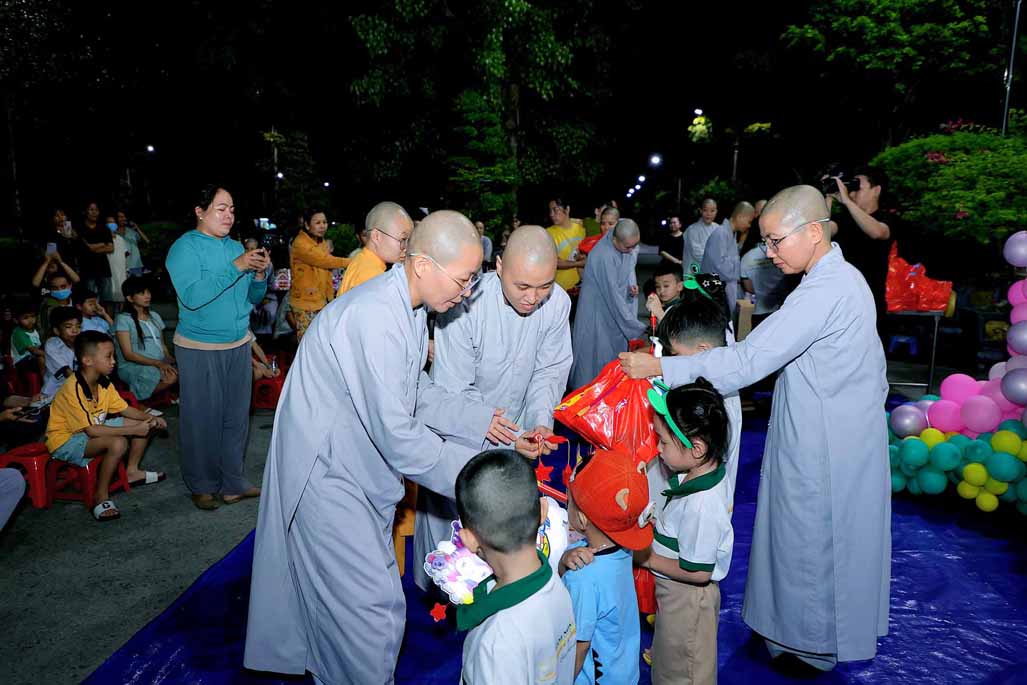 Tại buổi trao quà, có sự hiện diện của Ni sư Thích Như Nguyệt, Ni sinh Học viện trú xứ chùa Thanh Tâm, đông đảo Phật tử, phụ huynh và trẻ em tham dự.