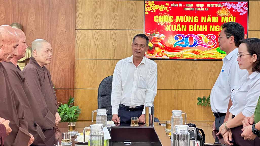 Bên thềm Xuân Bính Ngọ, đại diện Phật giáo Liên phường Thuận An, Bình Hoà, Lái Thiêu, An Phú (TP.HCM), đã tổ chức chuyến thăm, chúc Tết lãnh đạo chính quyền phường Thuận An: Đảng ủy, HĐND, UBND, Ủy ban MTTQ, Công an, Ban Chỉ huy Quân sự vào chiều ngày 02/02/2026.