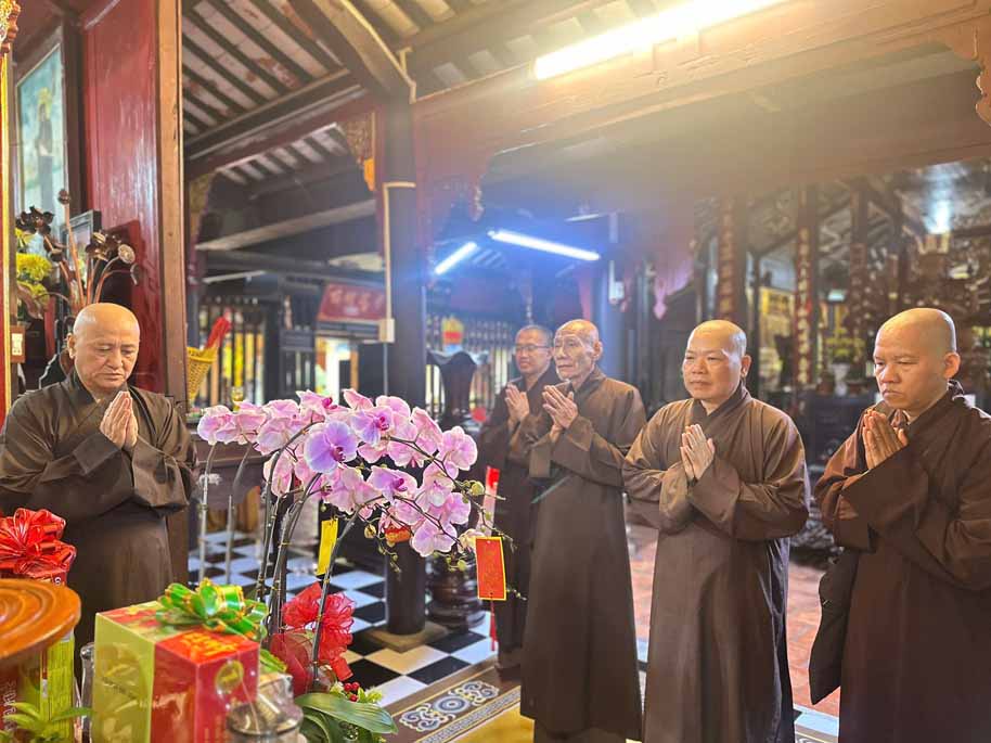 Đoàn do Thượng tọa Thích Chơn Phát – Ủy viên HĐTS, Phó ban Trị sự kiêm Phó ban Thường trực Ban Giáo dục Phật giáo TP.Hồ Chí Minh làm Trưởng đoàn; TT. Thích Thiện Hỷ – Ủy viên Ban Trị sự GHPGVN thành phố; cùng chư Tôn đức trụ trì các tự viện thuộc phường Bình Hoà, Lái Thiêu đồng tháp tùng đến thăm, chúc mừng Xuân Bính Ngọ năm 2026.