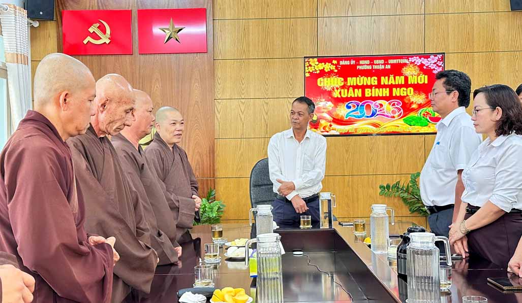 Bên thềm Xuân Bính Ngọ, đại diện Phật giáo Liên phường Thuận An, Bình Hoà, Lái Thiêu, An Phú (TP.HCM), đã tổ chức chuyến thăm, chúc Tết lãnh đạo chính quyền phường Thuận An: Đảng ủy, HĐND, UBND, Ủy ban MTTQ, Công an, Ban Chỉ huy Quân sự vào chiều ngày 02/02/2026.